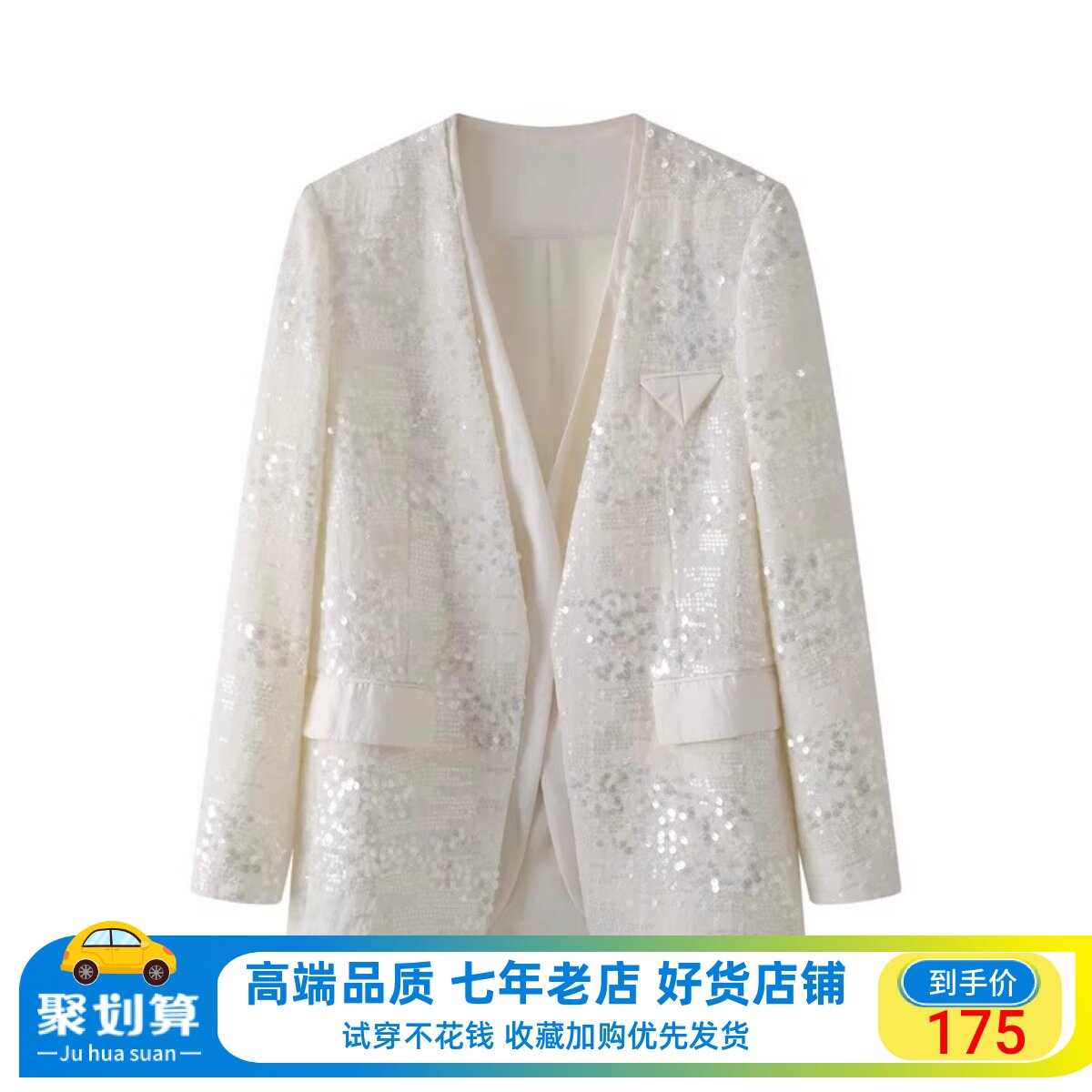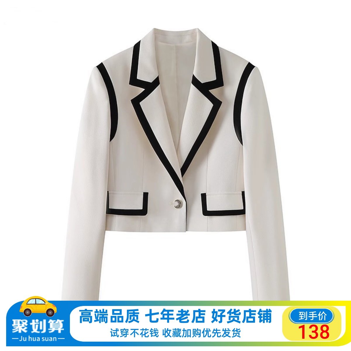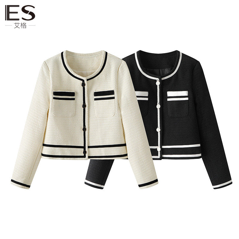 Etam/艾格ES 小香风外套女2023春秋新款气质白色圆领西装短外套