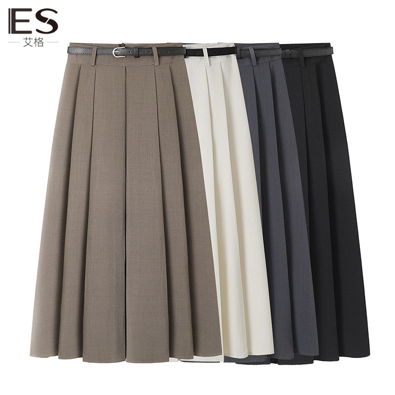 Etam艾格ES黑色百褶半身裙女春2024新款褶皱高腰a字显瘦西装长裙