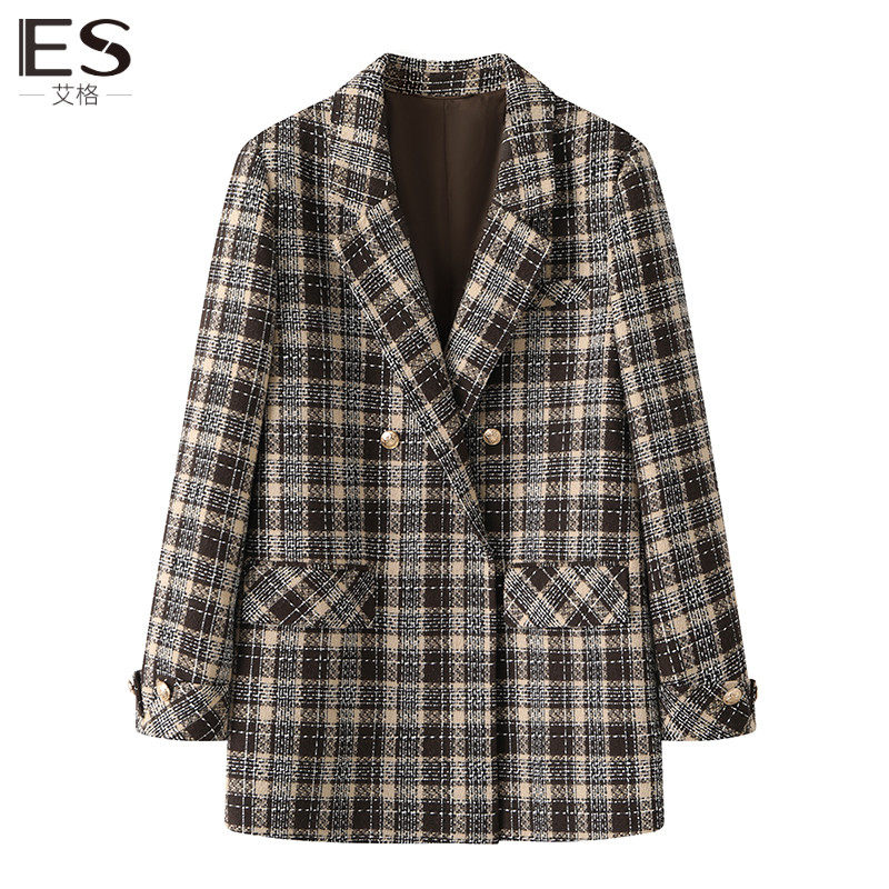 Etam/艾格ES格子西装外套女2023秋装新款气质高级感今年流行西服