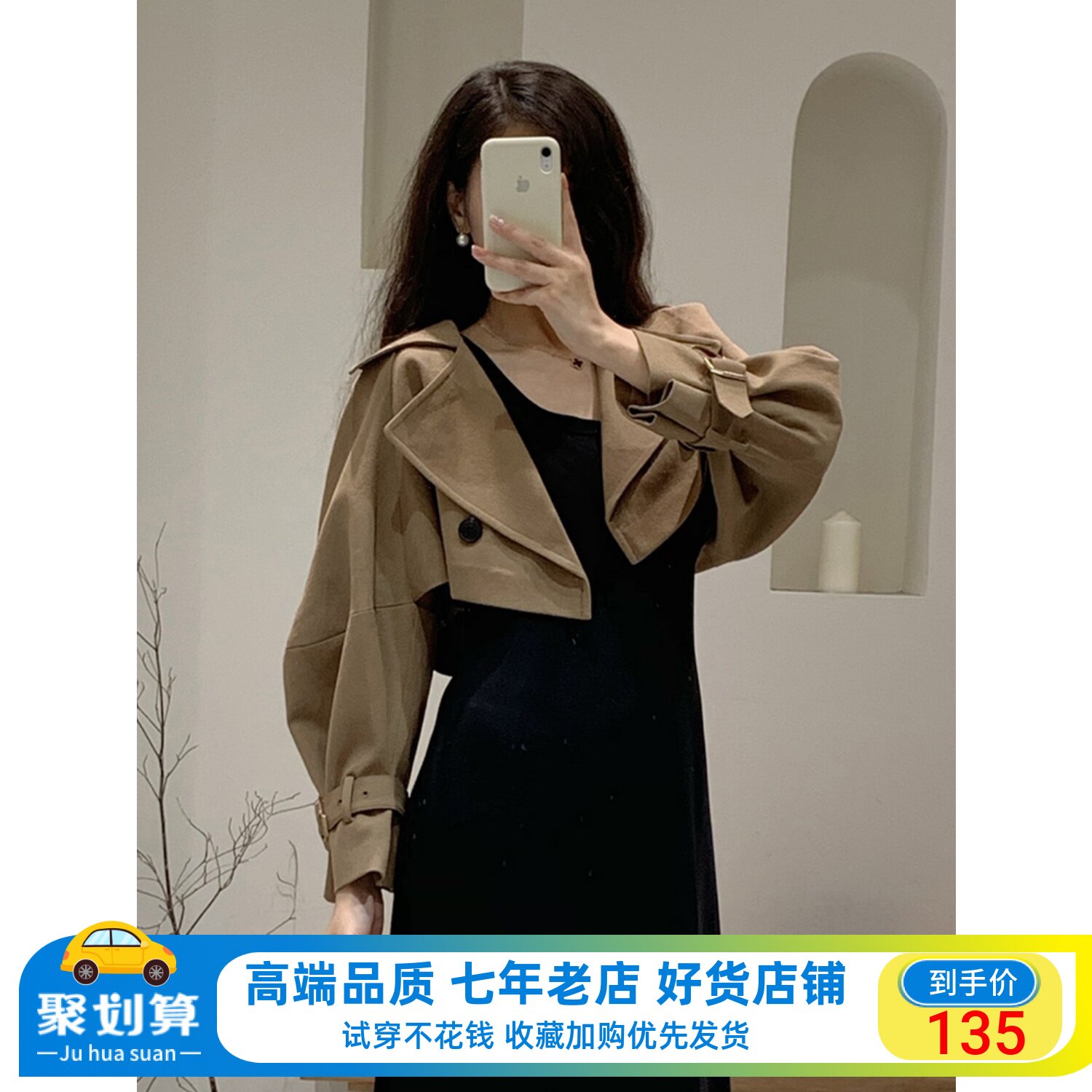 2023秋季新款范艾诺丝时尚摩卡棕西装领短风衣小香风外套30821035