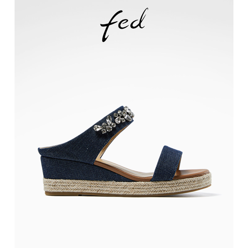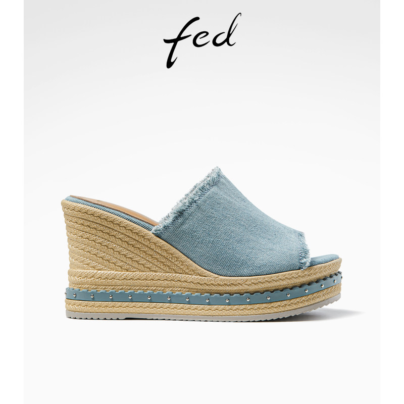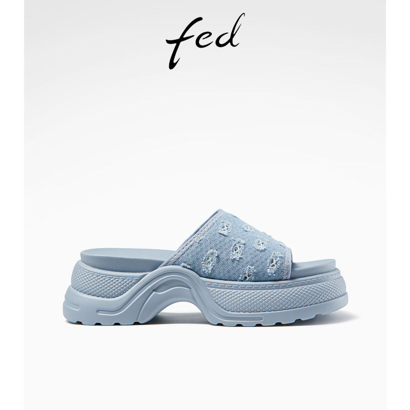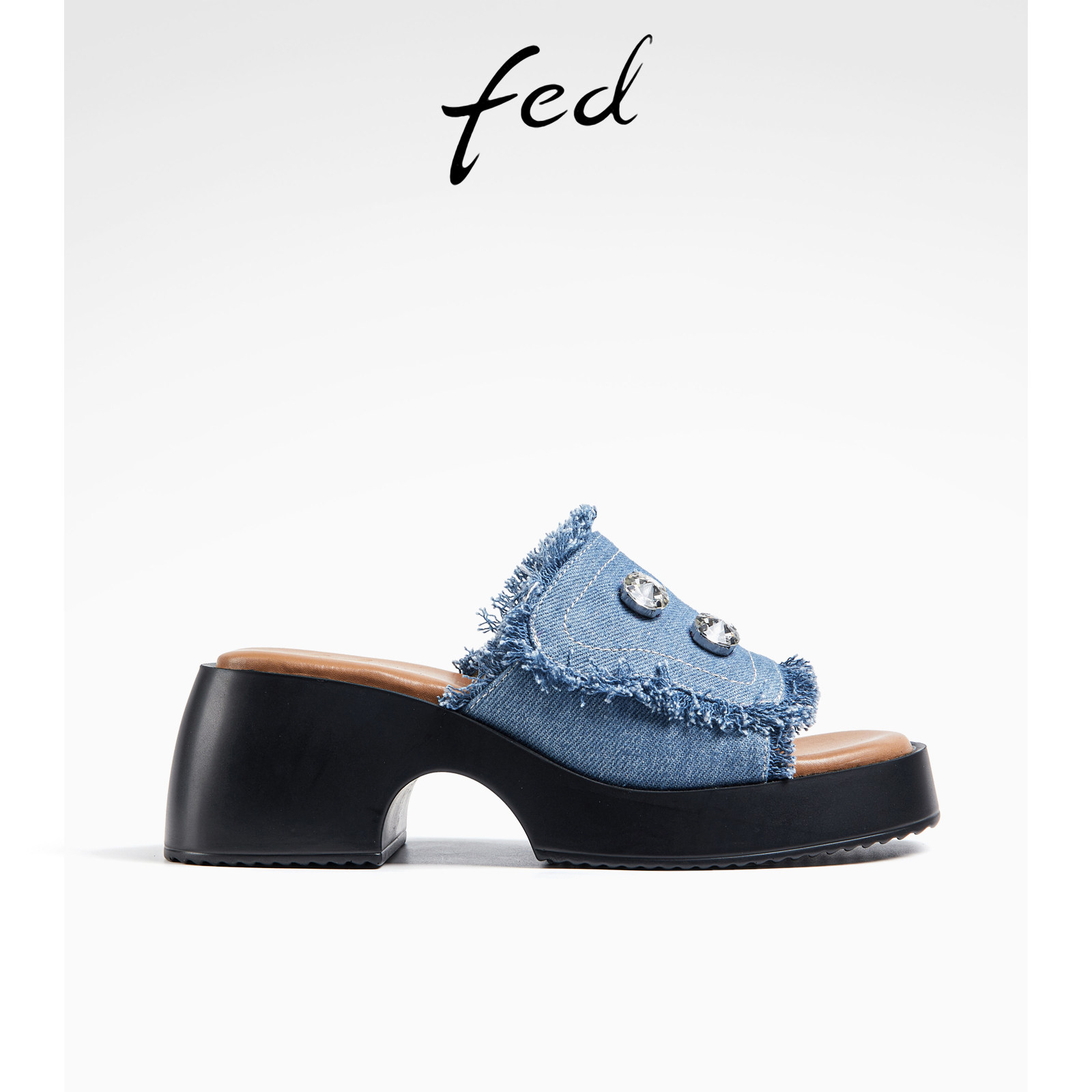 fed厚底凉鞋夏季新款女鞋时尚牛仔布一字带凉拖鞋女款R0724-YA025