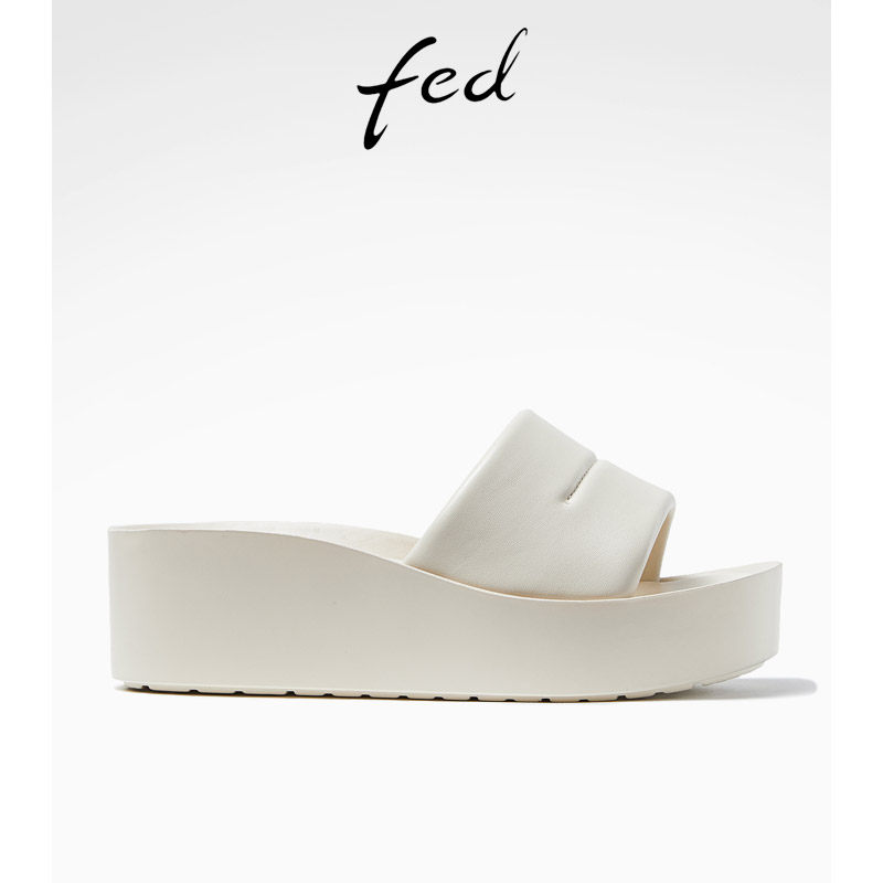 fed增高厚底皮凉鞋夏季新款女鞋一字带坡跟凉拖鞋女款R0704-ZF008
