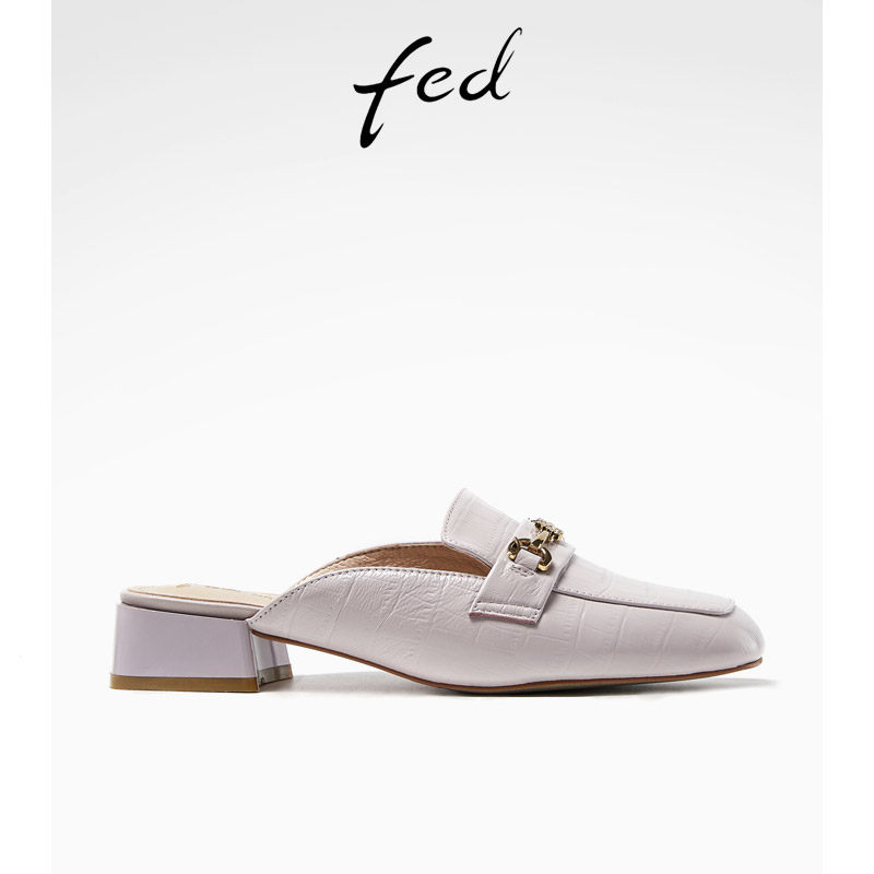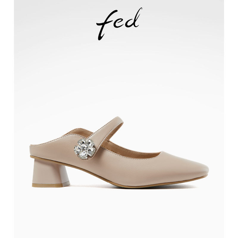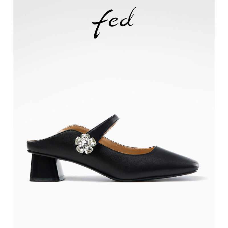 fed包头凉鞋夏季新款女鞋粗跟方头穆勒鞋真皮凉拖鞋R0420-ZFA012
