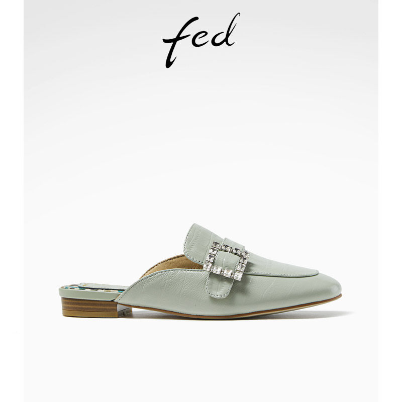fed平底半拖鞋夏季新款女鞋时尚水钻后空方头单鞋女R0603-ZFB013