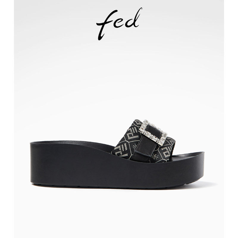fed坡跟凉拖鞋夏季新款女鞋休闲黑色增高厚底凉鞋女R0512-YAB710