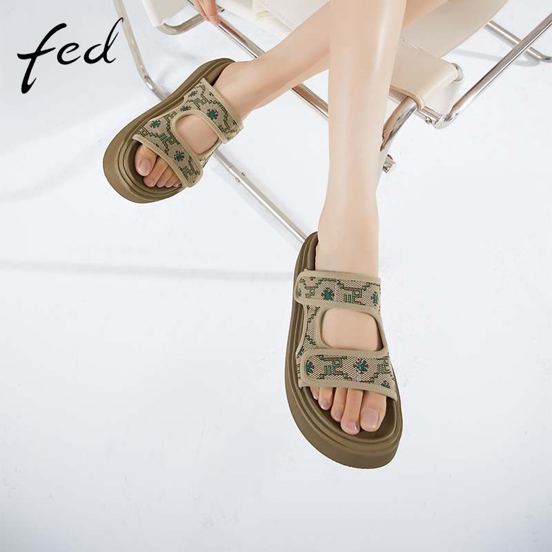 fed松糕底凉拖鞋夏季新款女鞋复古舒适厚底凉鞋女款R0612-ZFA168