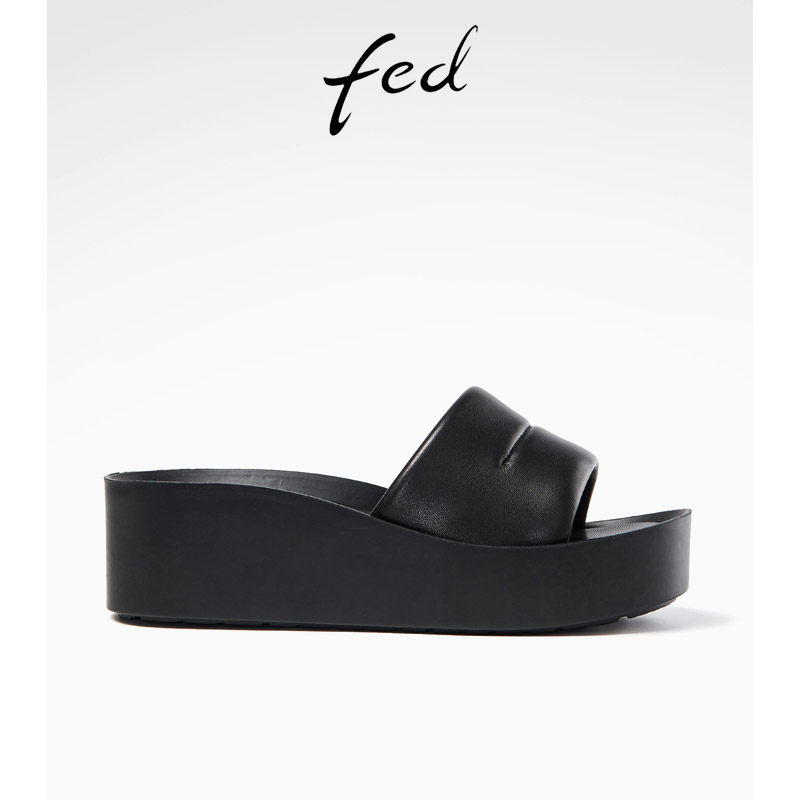 fed厚底凉鞋夏季新款女鞋黑色真皮洋气坡跟凉拖鞋女款R0704-ZF007