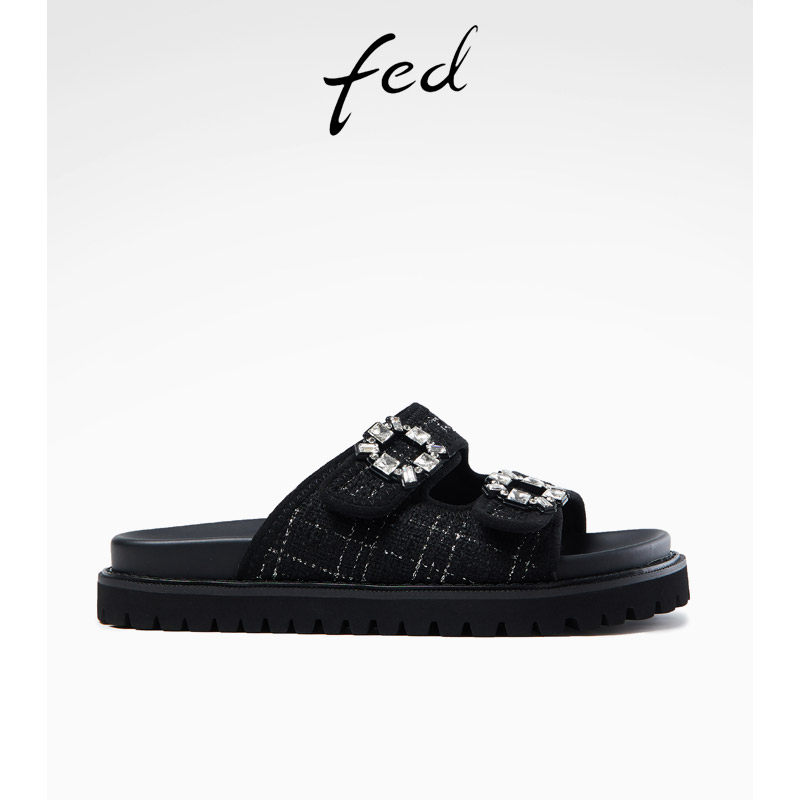 fed夏季新款女鞋水钻厚底凉拖小香风凉鞋外穿运动拖鞋R0413-YA555