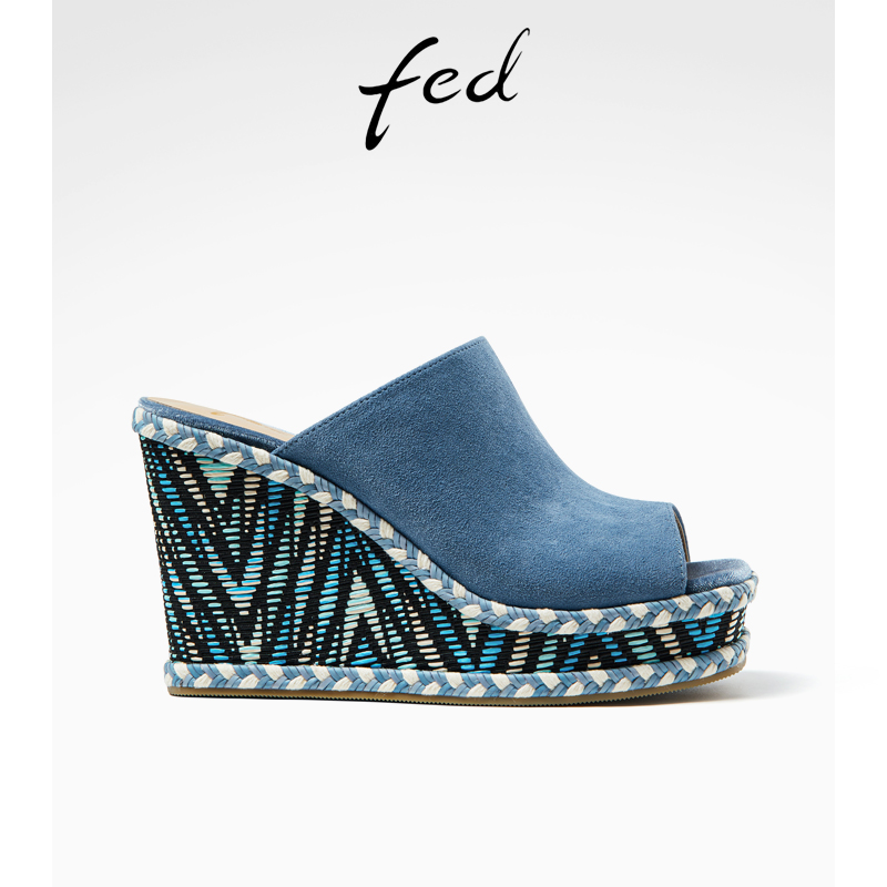 fed松糕厚底凉鞋夏季新款女鞋气质羊反绒坡跟凉拖鞋R0612-YAB020
