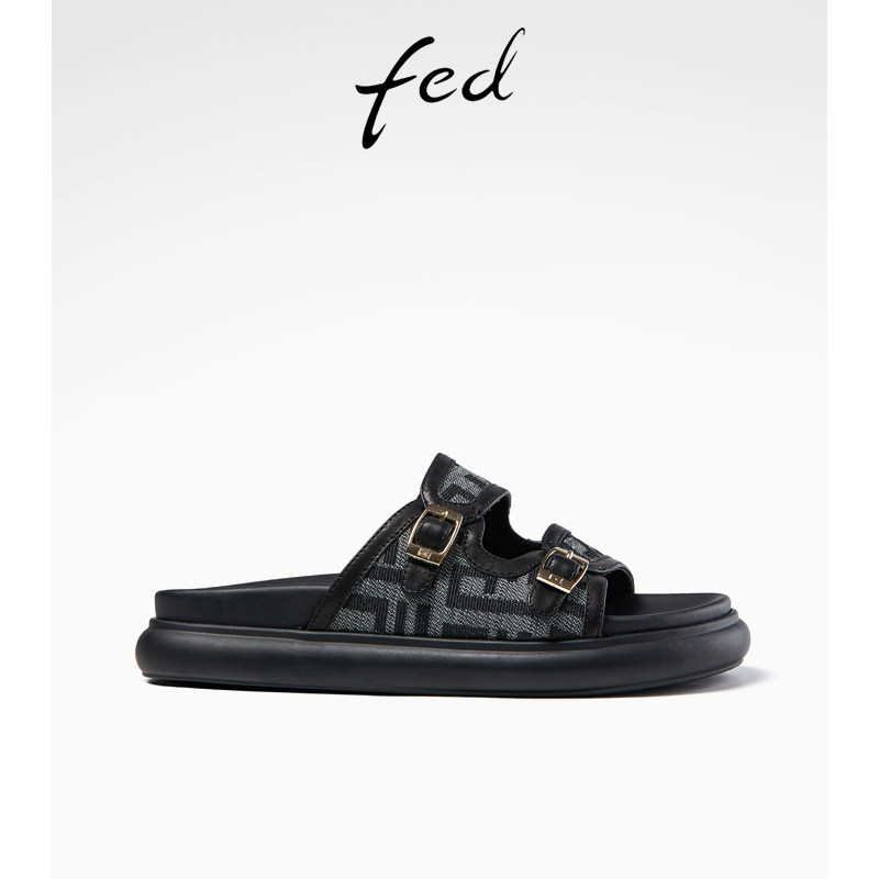 fed黑色厚底凉拖鞋夏季新款女鞋百搭不累脚凉鞋女款R0509-ZFA010