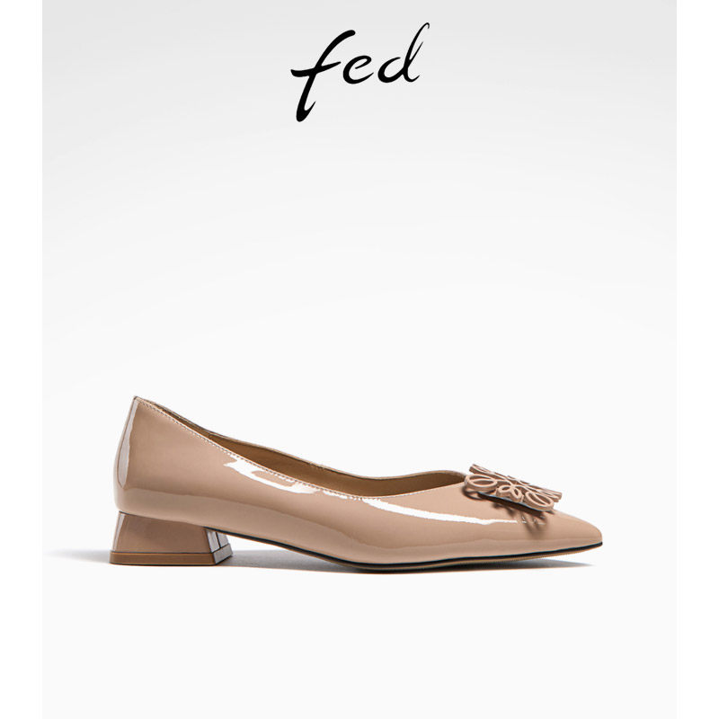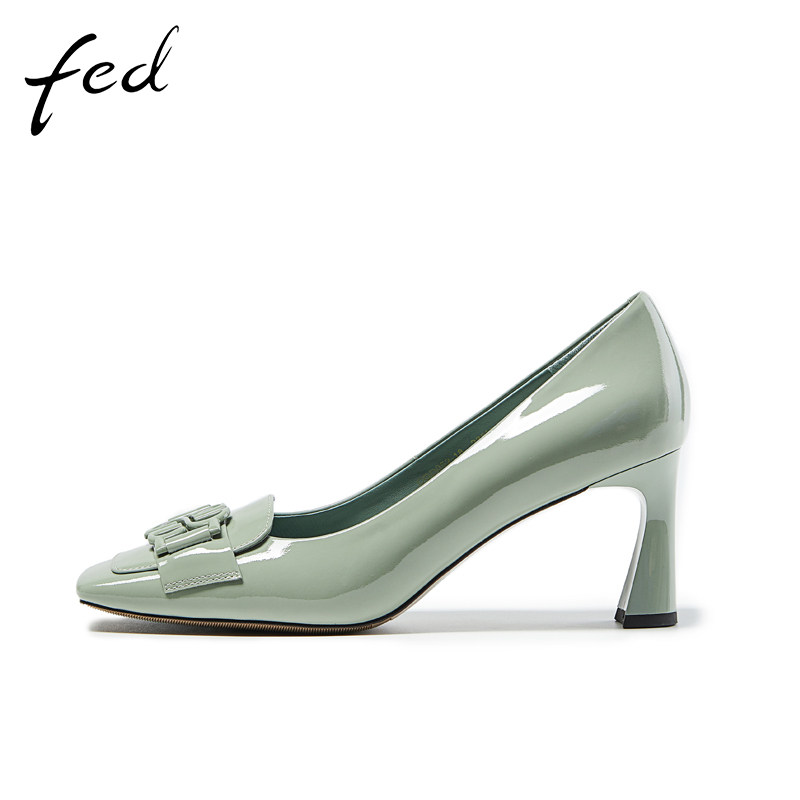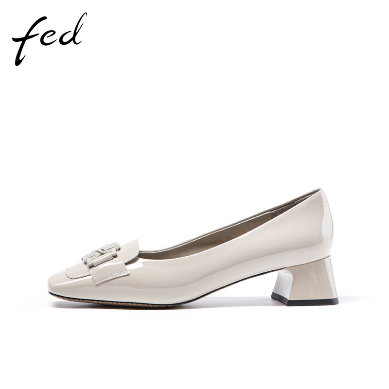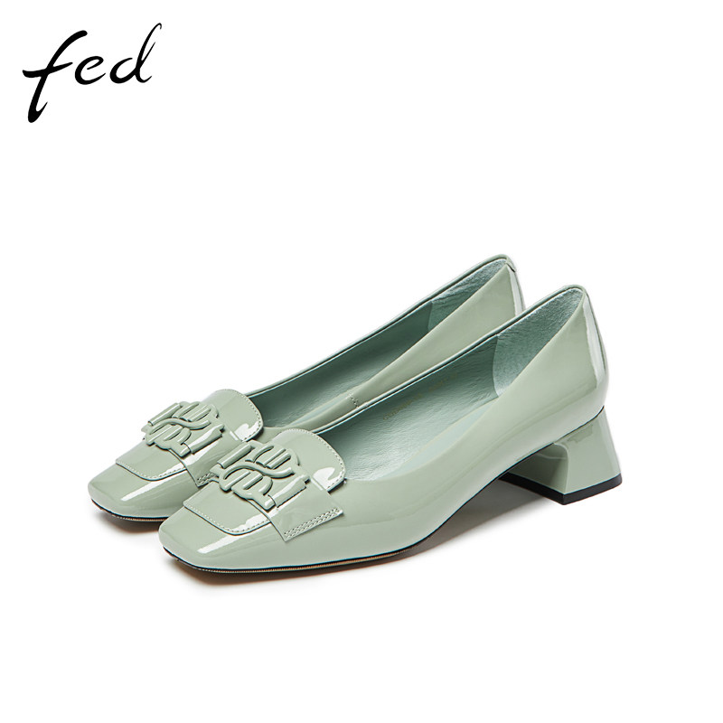 fed方头高跟鞋2023年春季新款女鞋漆皮粗跟浅口单鞋女R0222-YA060