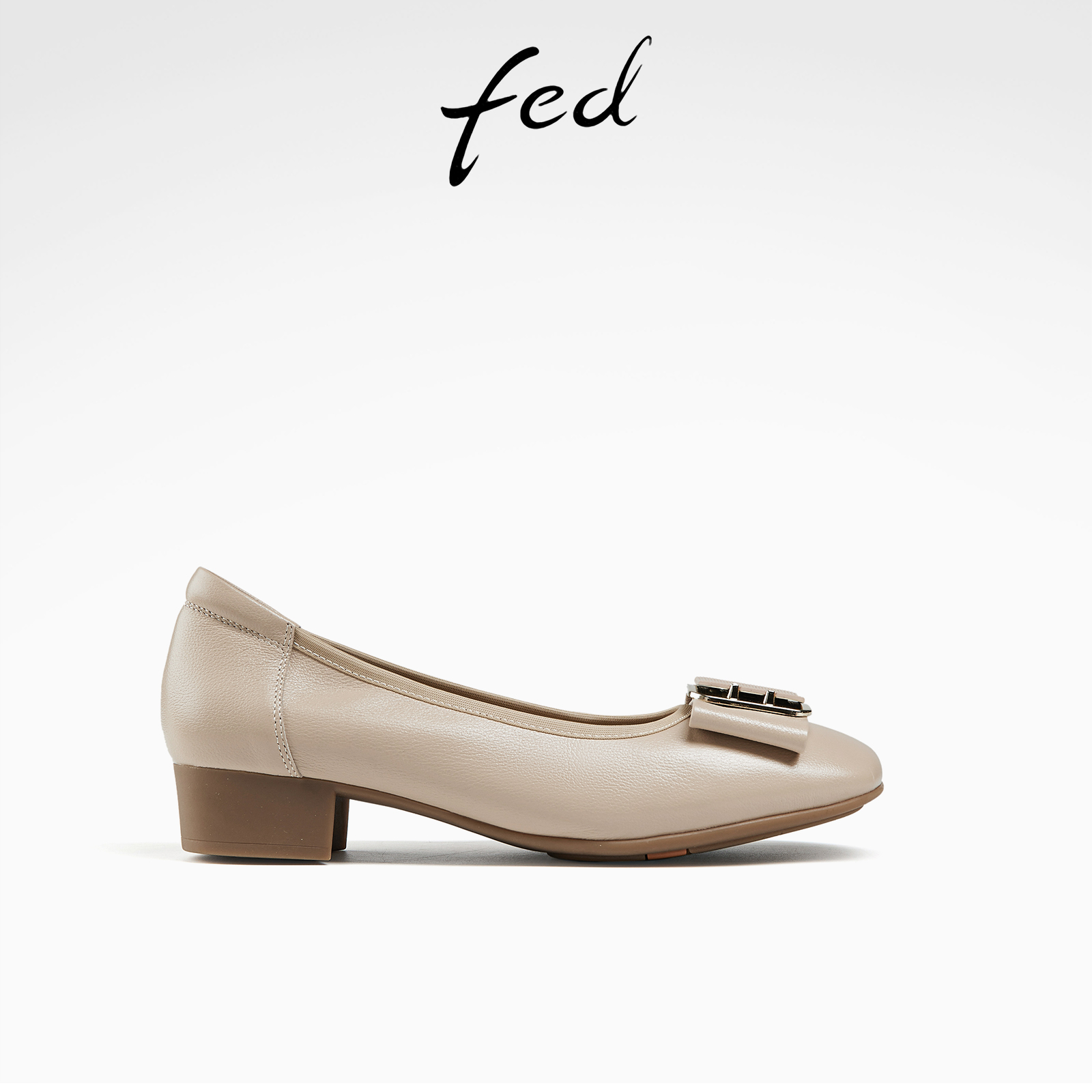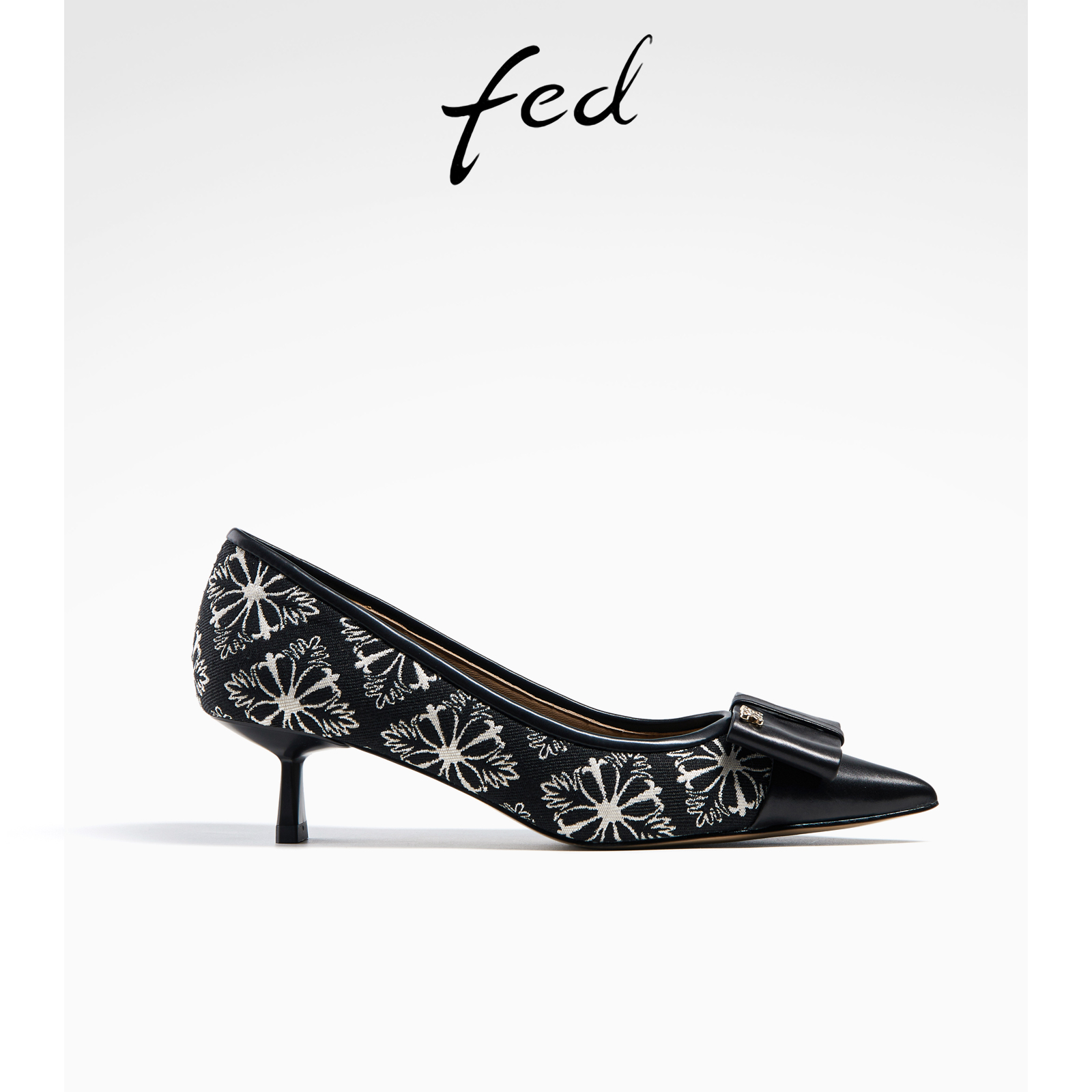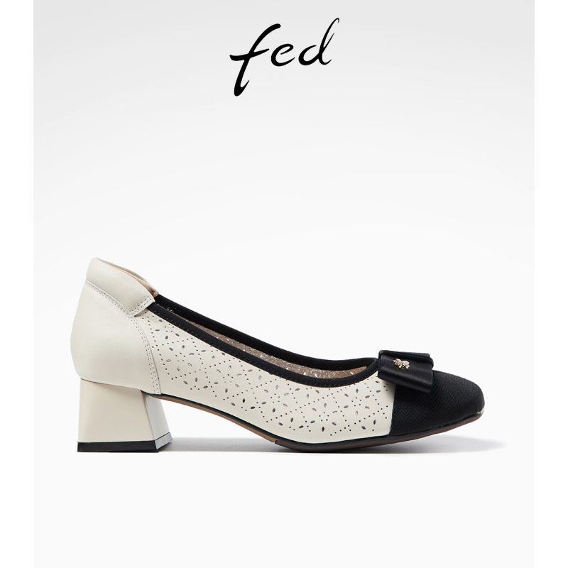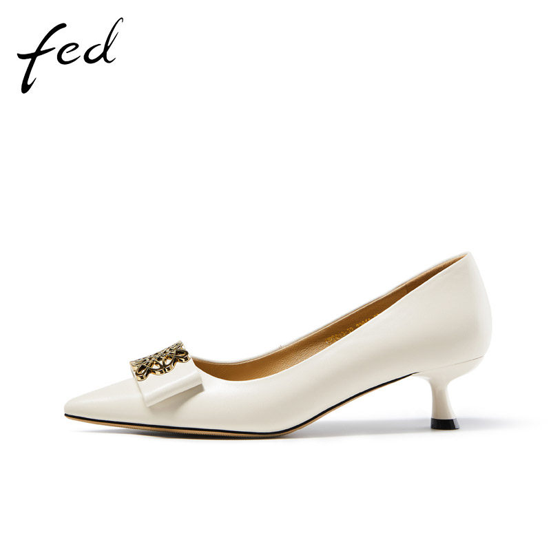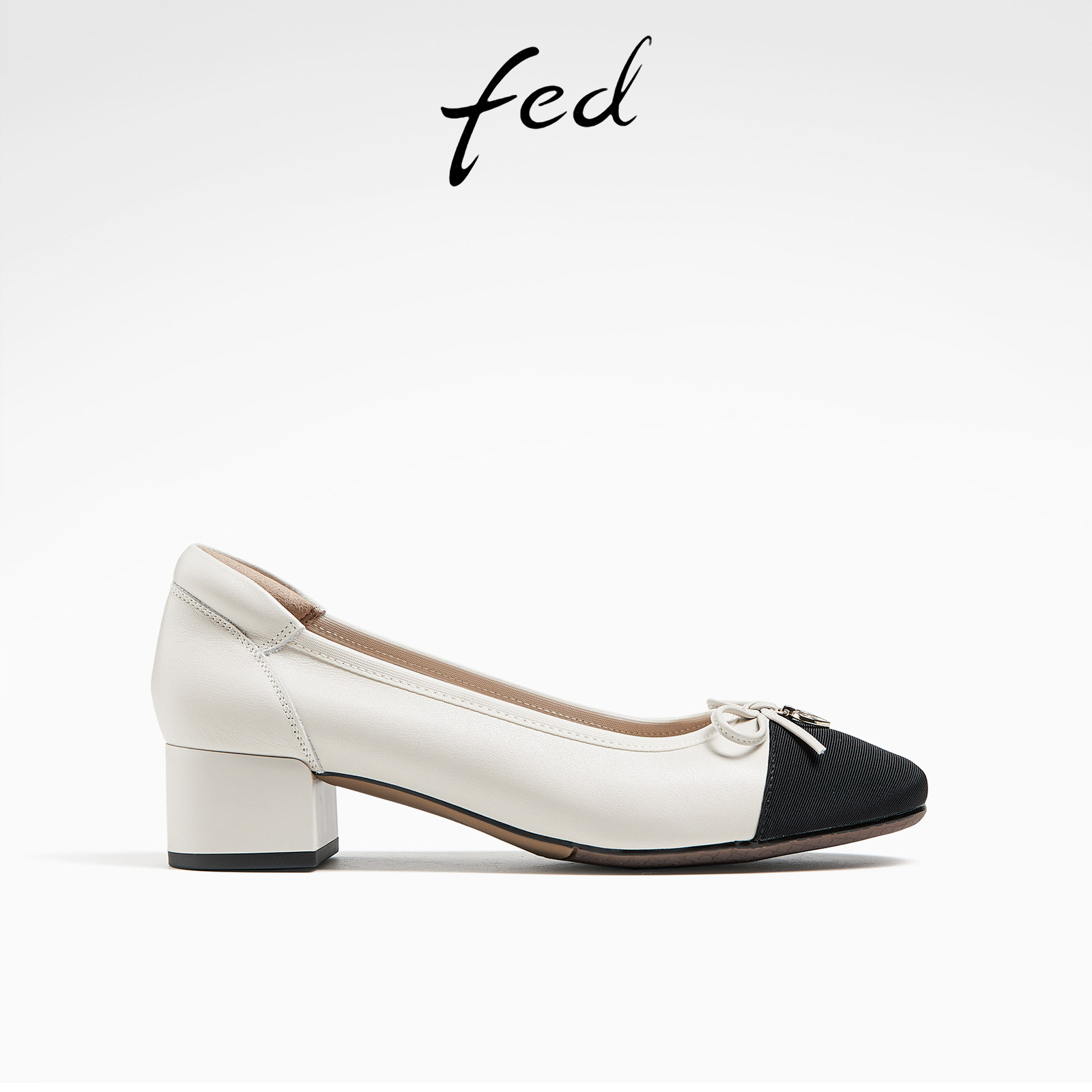 fed真皮鞋春季新款女鞋蝴蝶结中跟高跟鞋法式单鞋女D0217-YAB627