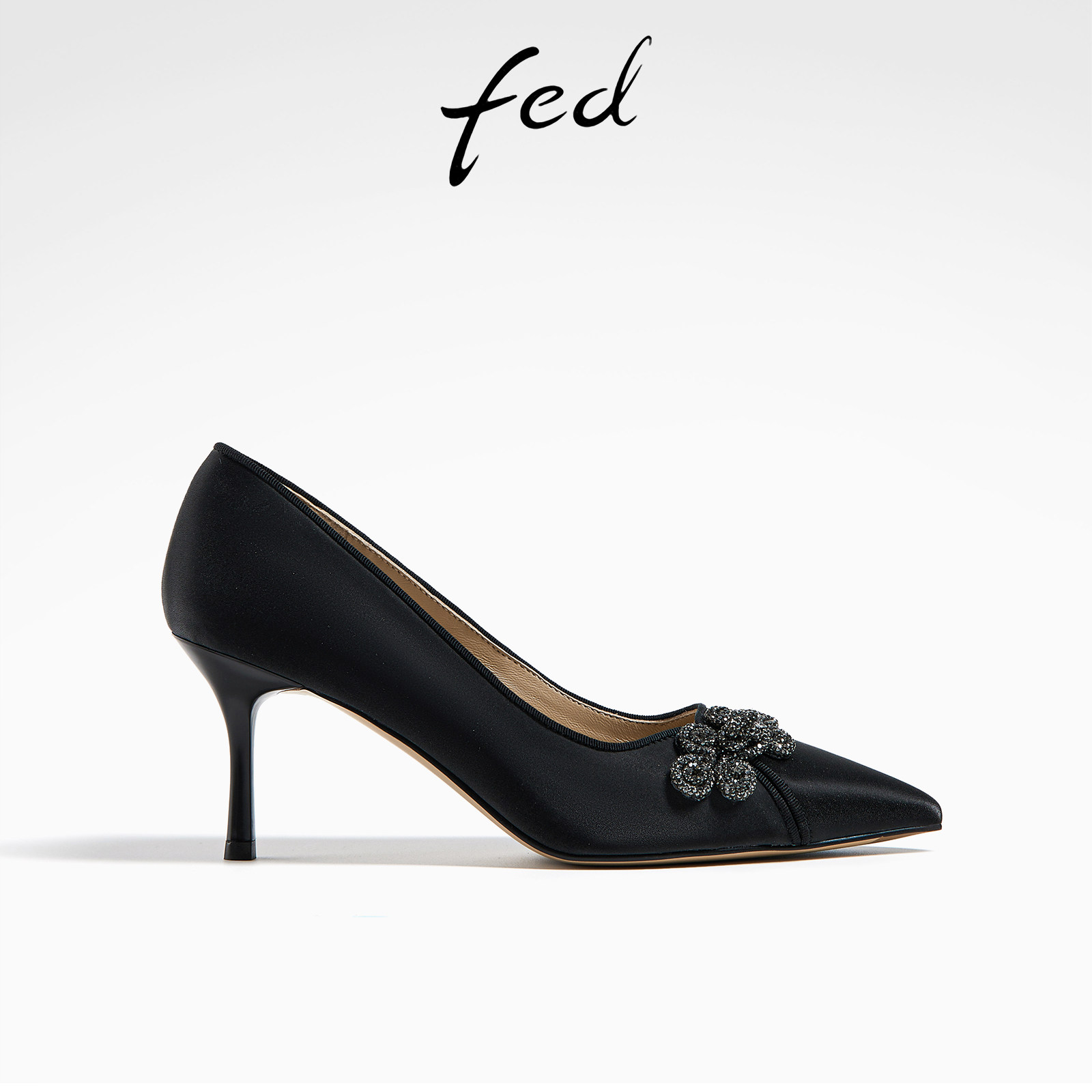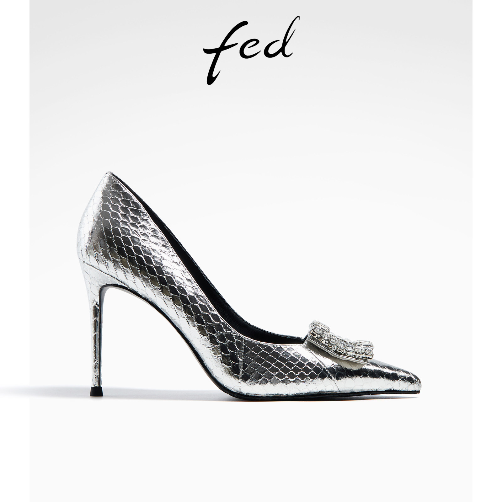 fed浅口单鞋2023年春季新款真皮女鞋猫跟水钻高跟鞋女R0110-YA001