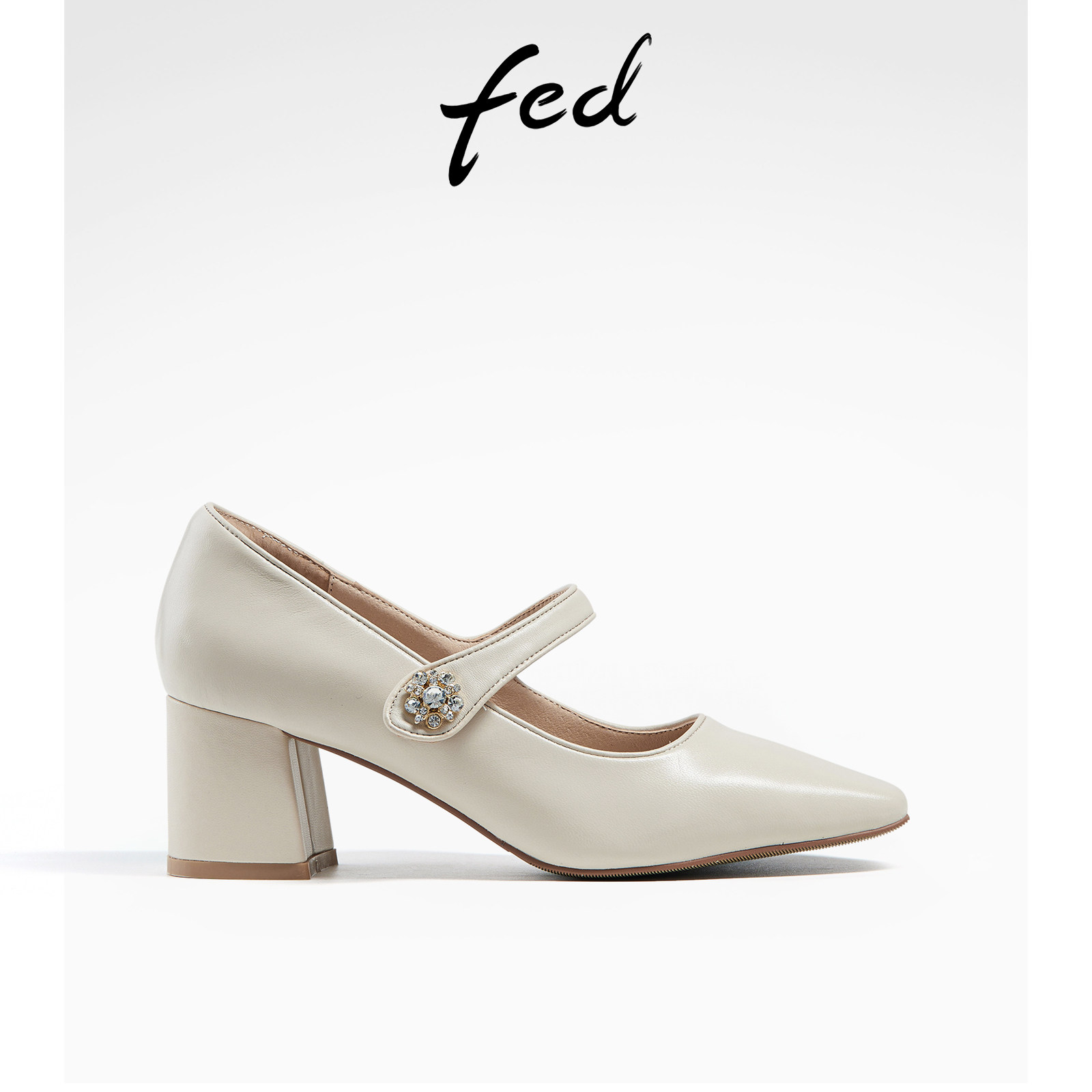 fed尖头高跟鞋秋季新款女鞋气质玛丽珍鞋真皮单鞋女R0814-ZCA057