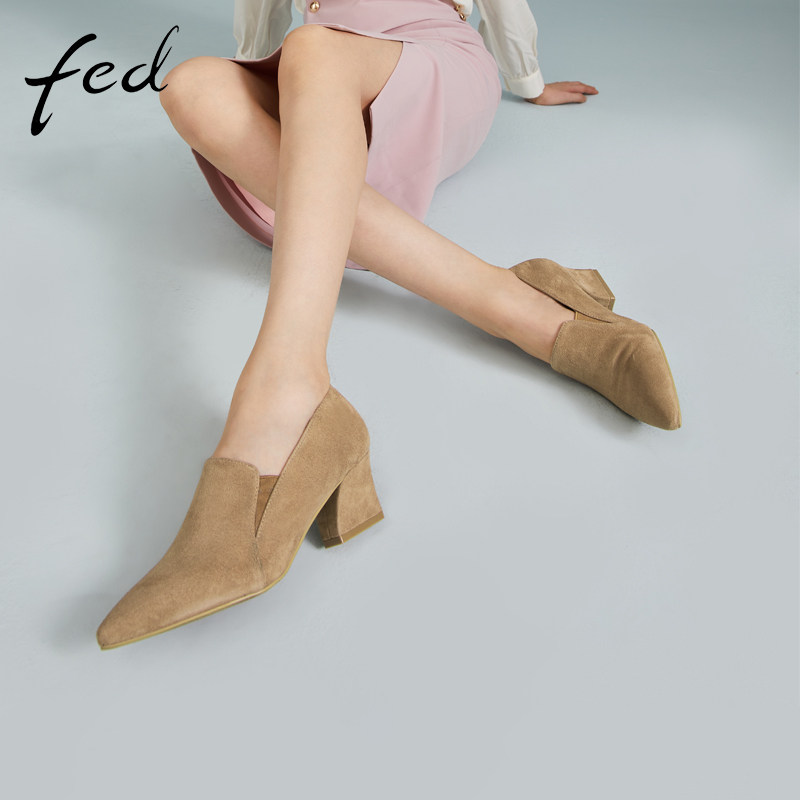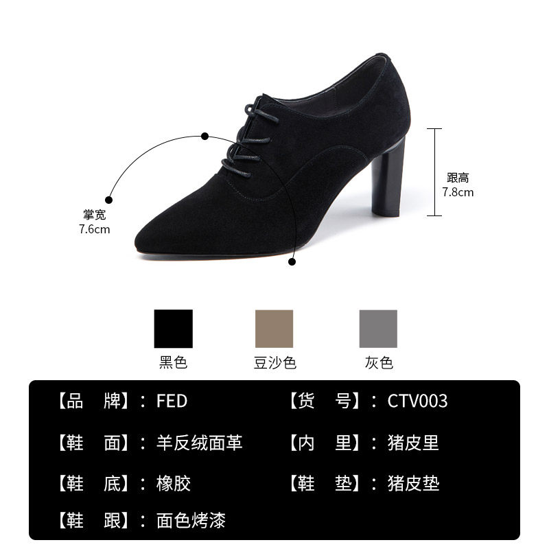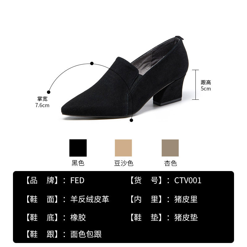 fed羊反绒女鞋2023年春季新款女鞋粗跟女士尖头高跟鞋R0201-ZF002