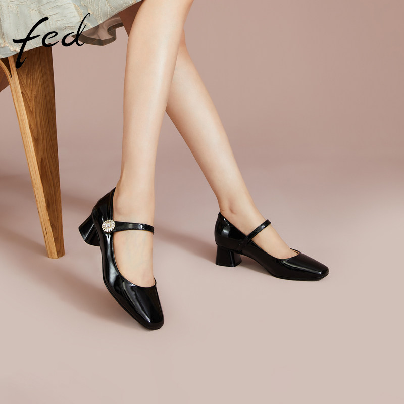 fed方头玛丽珍鞋秋季新款女鞋粗跟高跟鞋浅口单鞋女R0821-ZCA005
