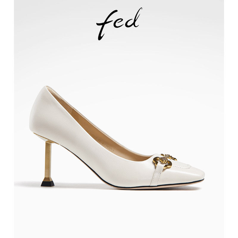 fed气质高跟鞋女2023年春季新款女鞋真皮细跟方头单鞋R0216-ZF063