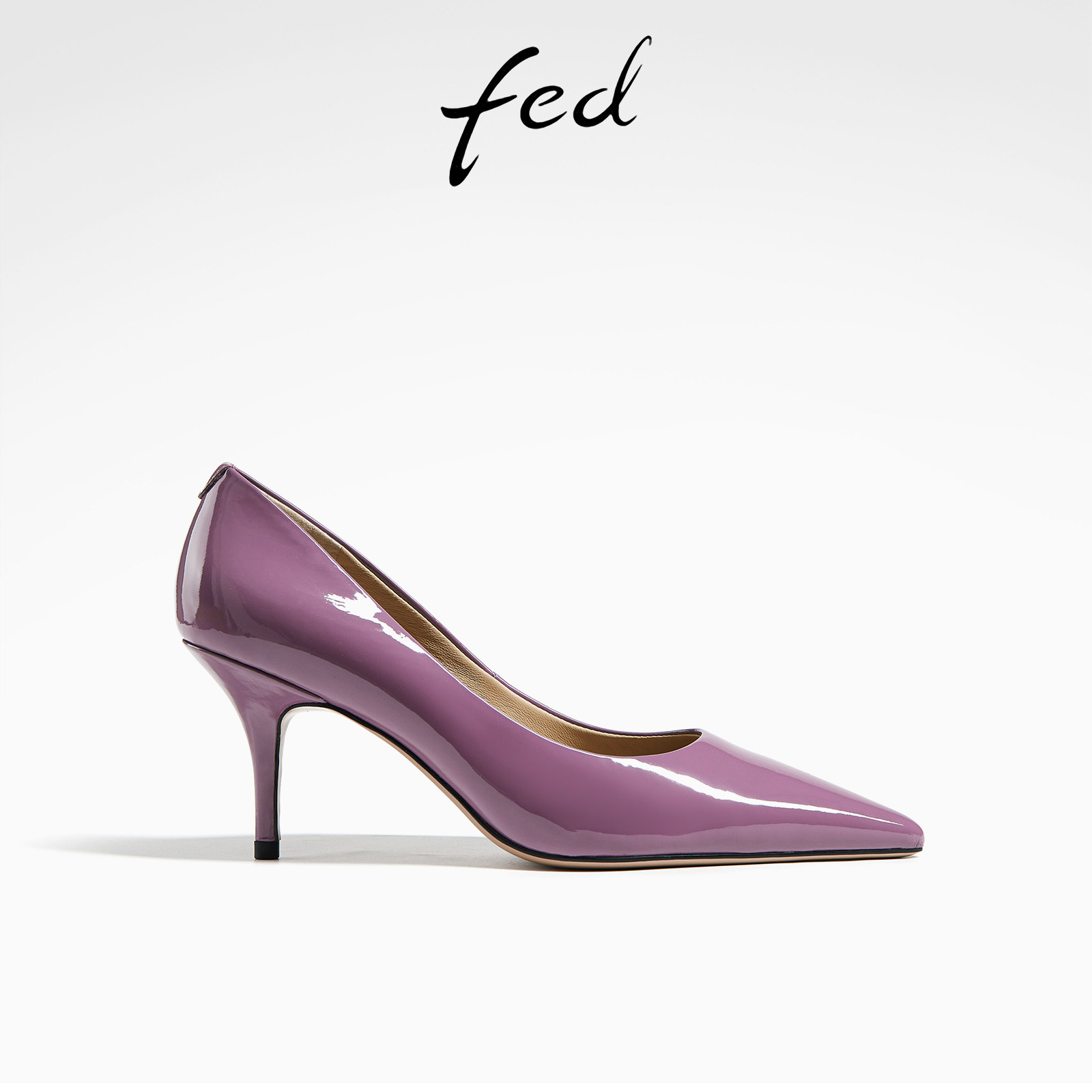 fed紫色浅口单鞋春季新款女鞋气质尖头细跟高跟鞋女款D0103-YA616