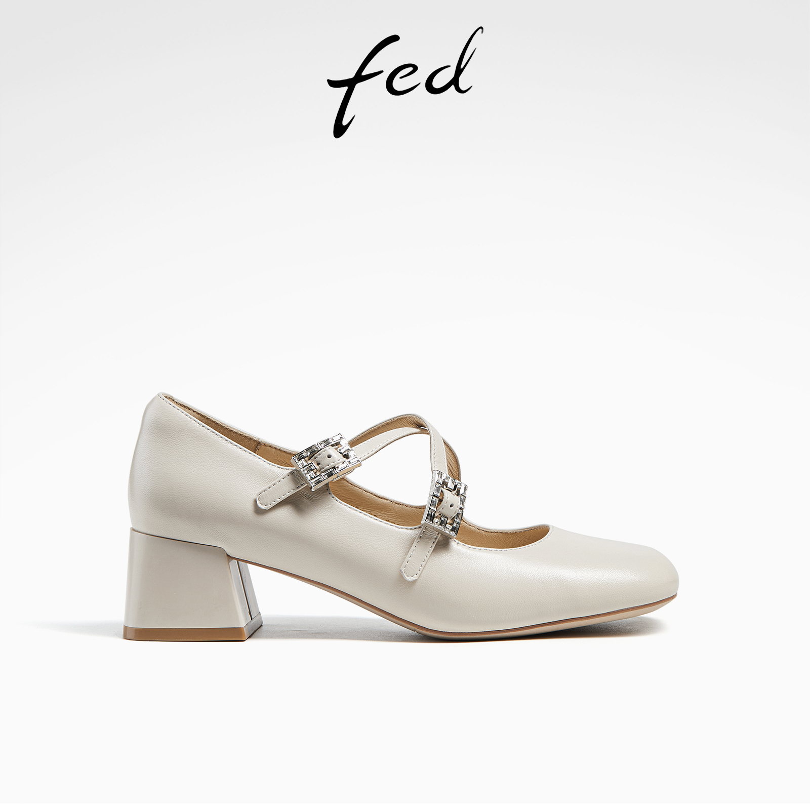 fed鞋子玛丽珍鞋小众女鞋法式真皮单鞋皮鞋白色高跟鞋523-256