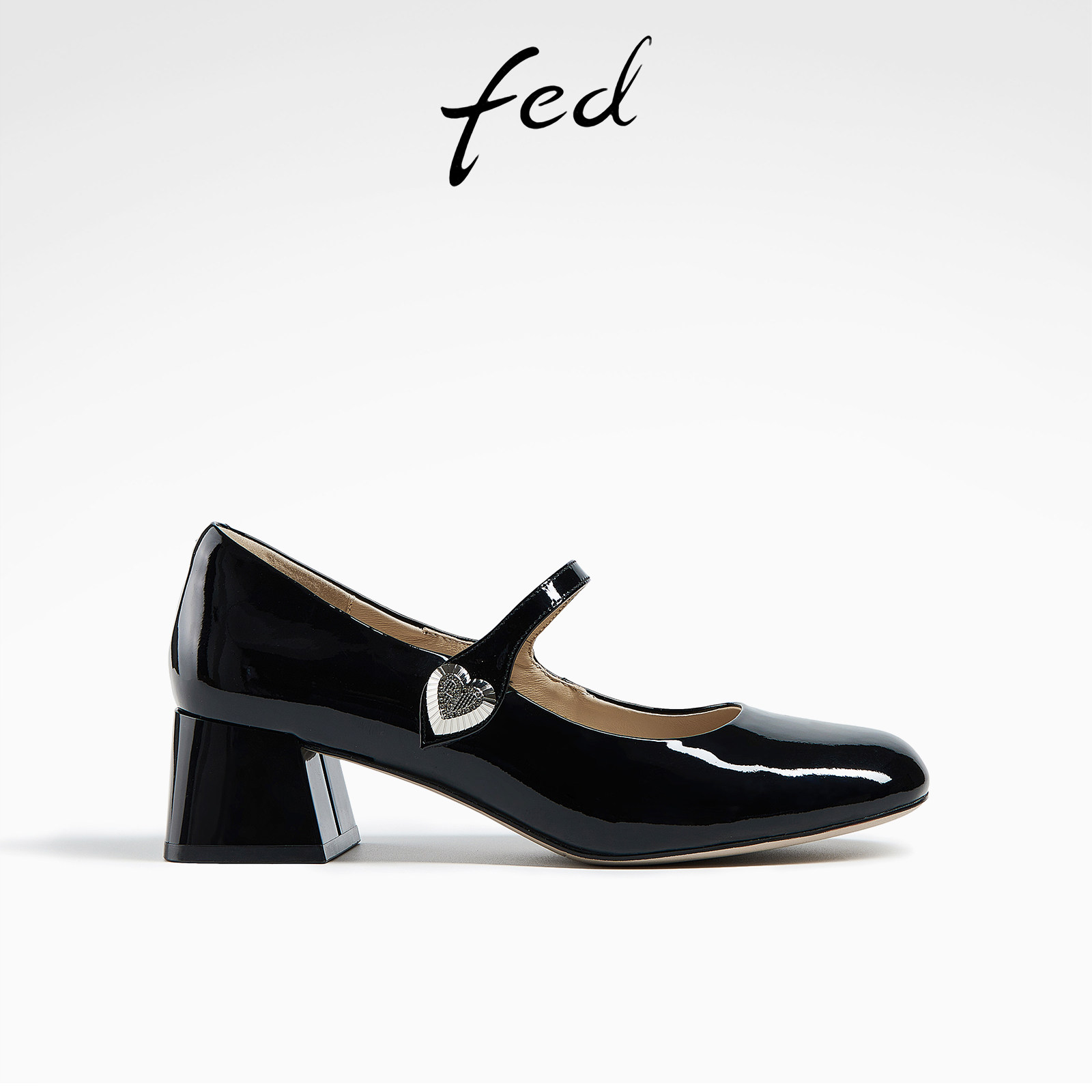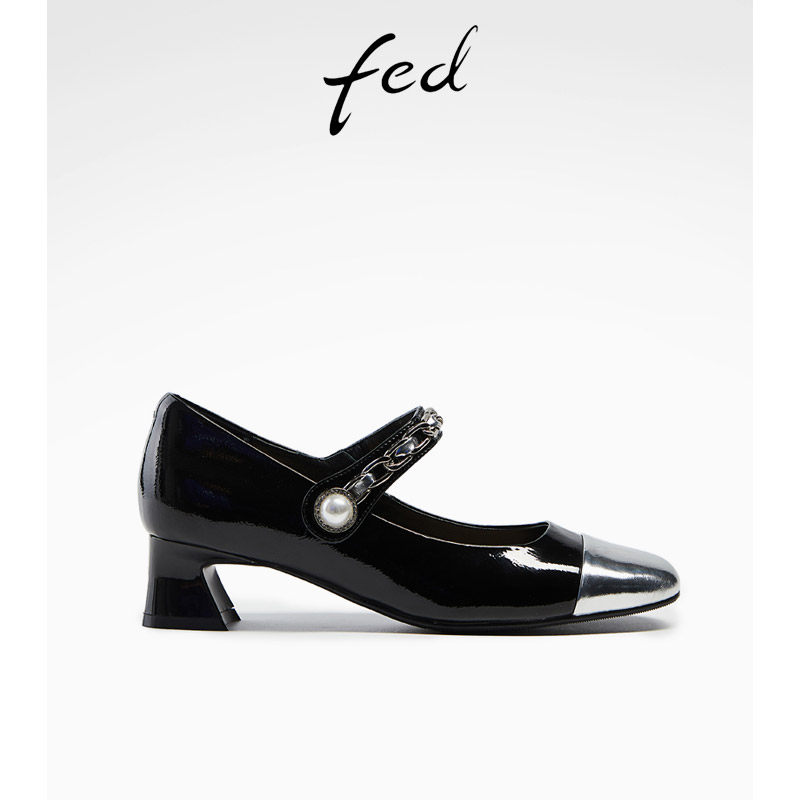 fed玛丽珍鞋女2023年春季新款女鞋粗跟单鞋浅口高跟鞋R0213-YA036