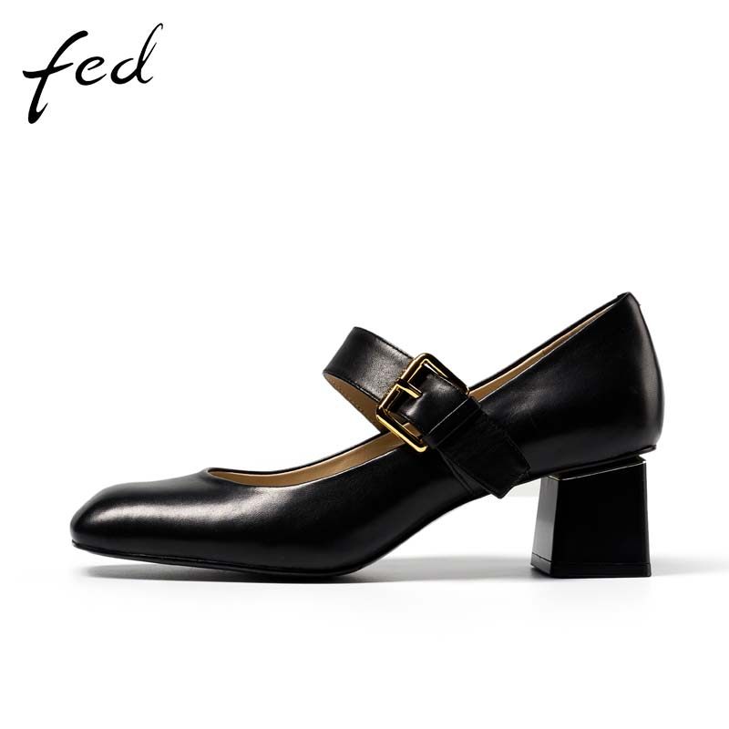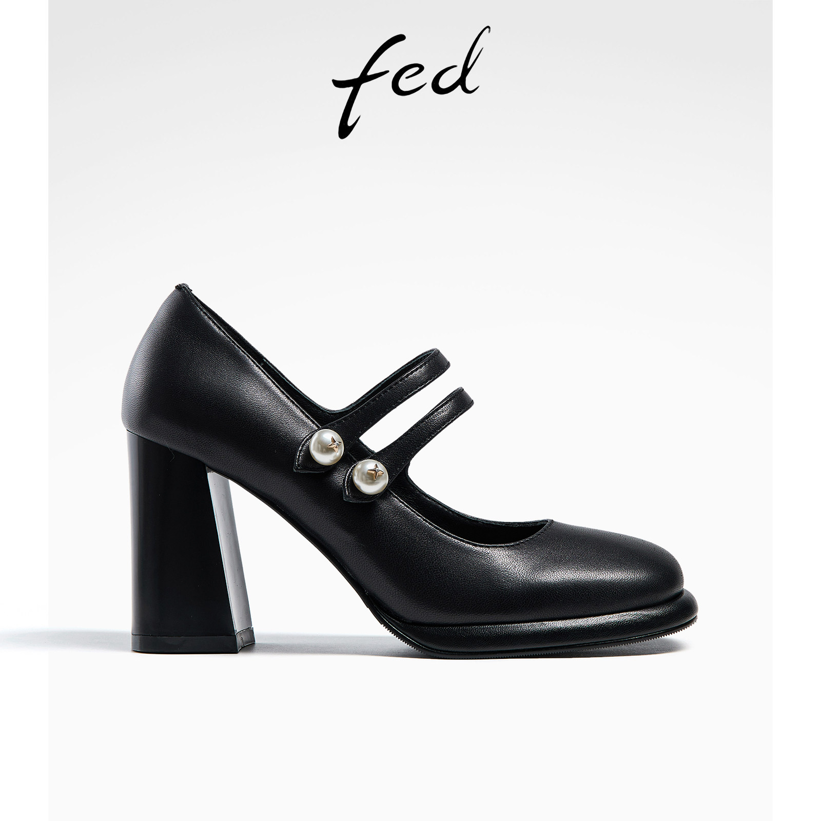 fed高跟鞋秋季新款女鞋气质真皮玛丽珍鞋粗跟单鞋女款R0817-ZF058