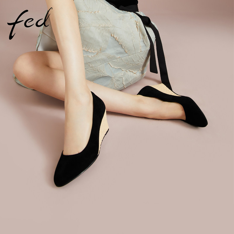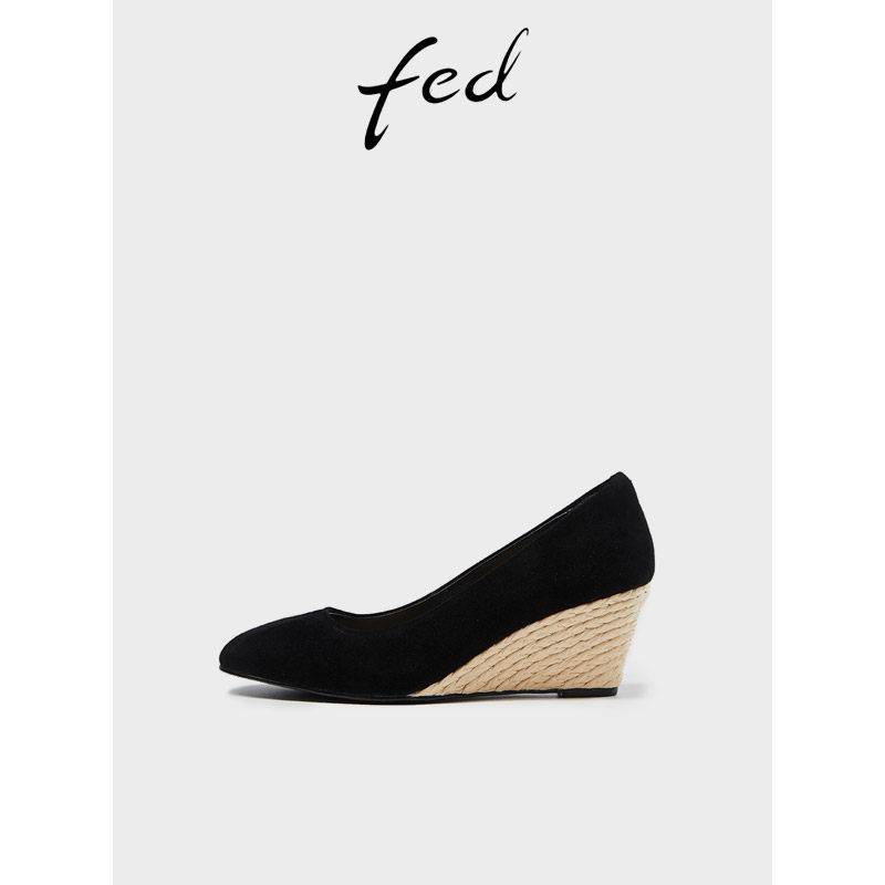 fed坡跟高跟鞋女2023年春季新款女鞋圆头浅口气质单鞋R0222-YA285