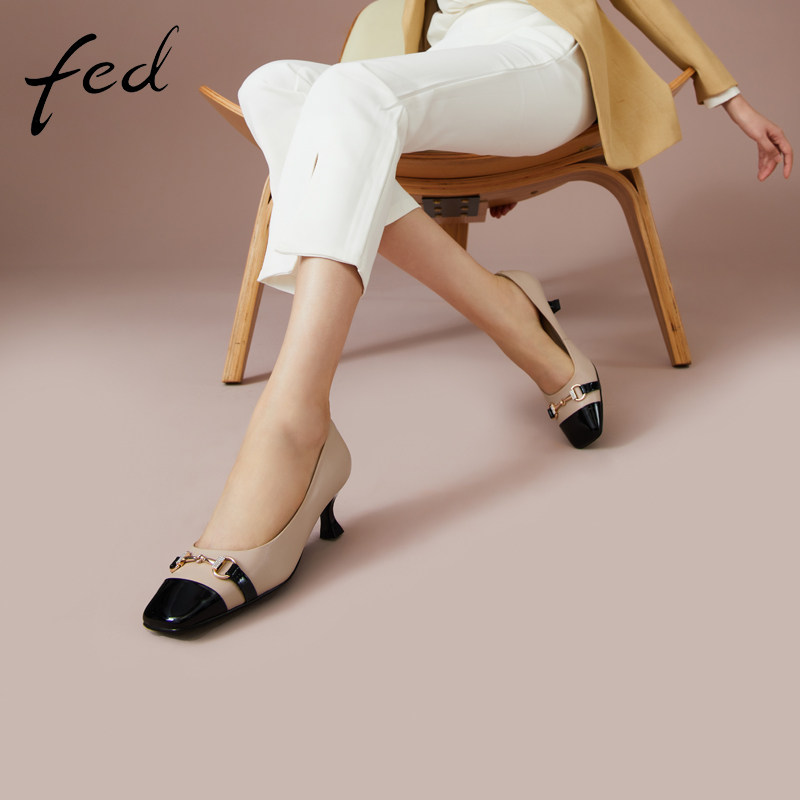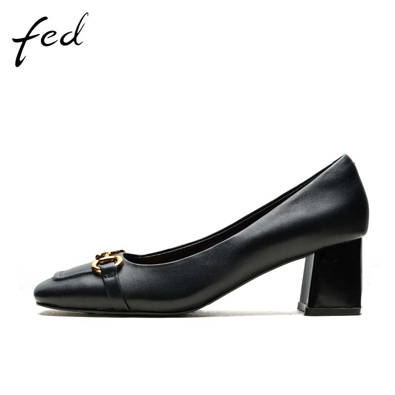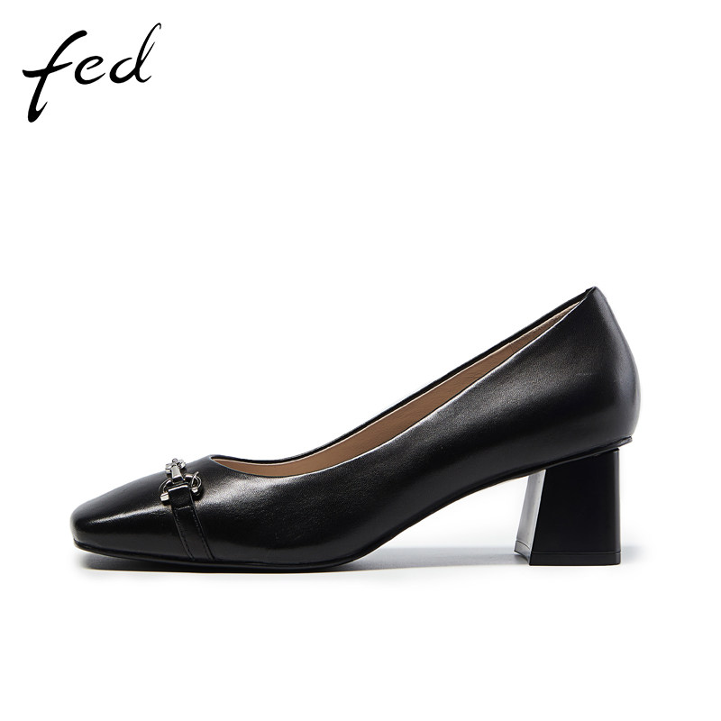 fed时尚粗跟单鞋2023年春季新款女鞋中跟方头高跟鞋R0222-YAC060