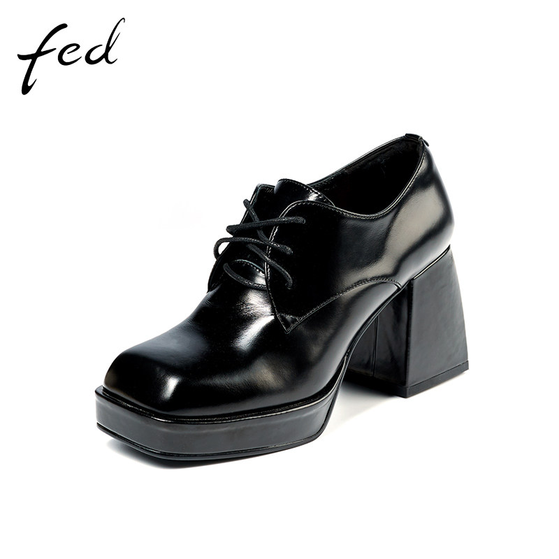 fed深口单鞋女秋季新款女鞋复古真皮粗跟高跟鞋女款R0927-ZCA237