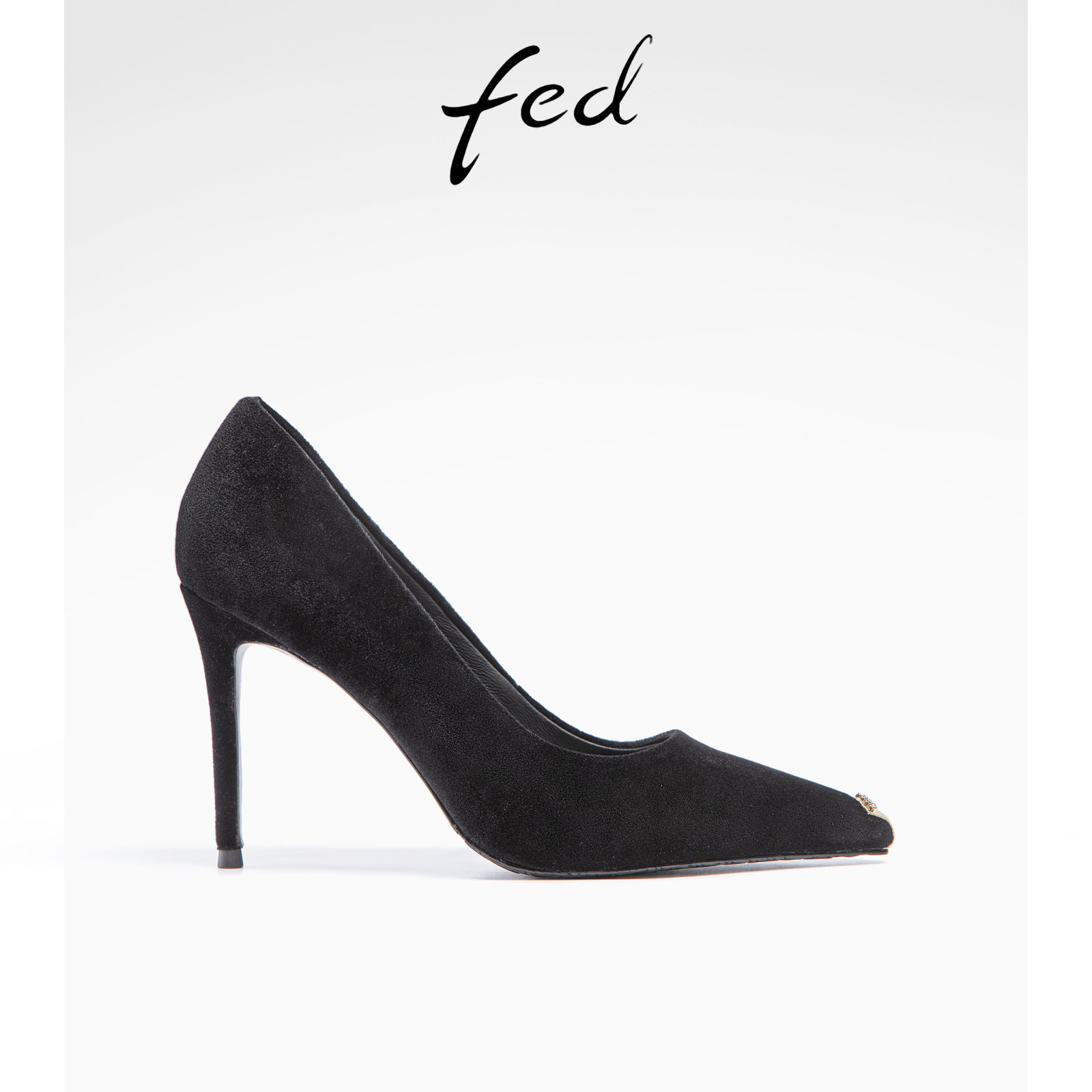 fed浅口单鞋秋季新款女鞋优雅绒面尖头细跟高跟鞋女R0731-YAB118