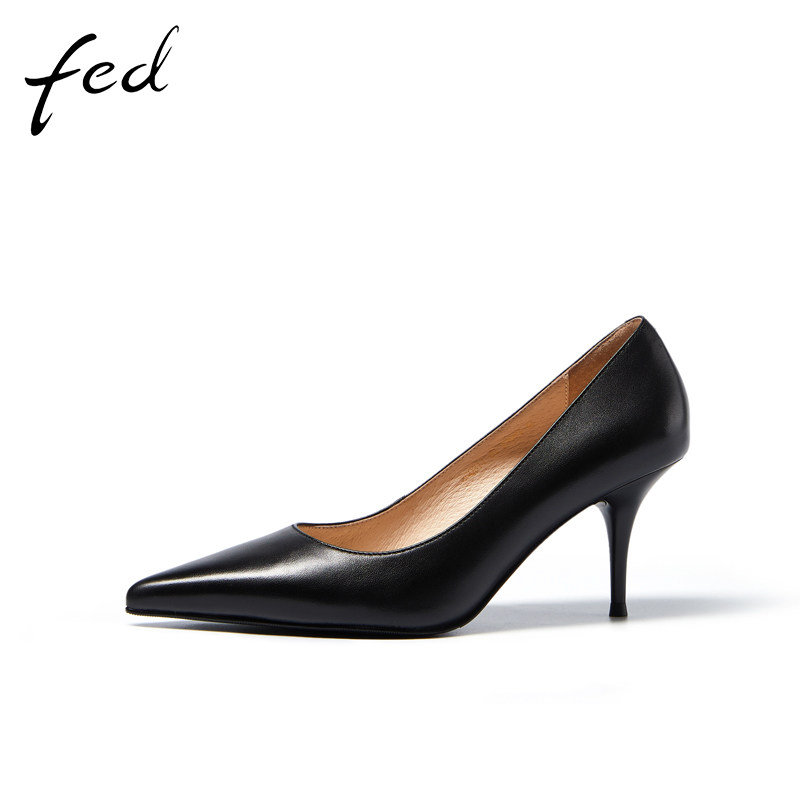 fed通勤单鞋2023年春季新款女鞋真皮尖头法式高跟鞋R0308-YAB089