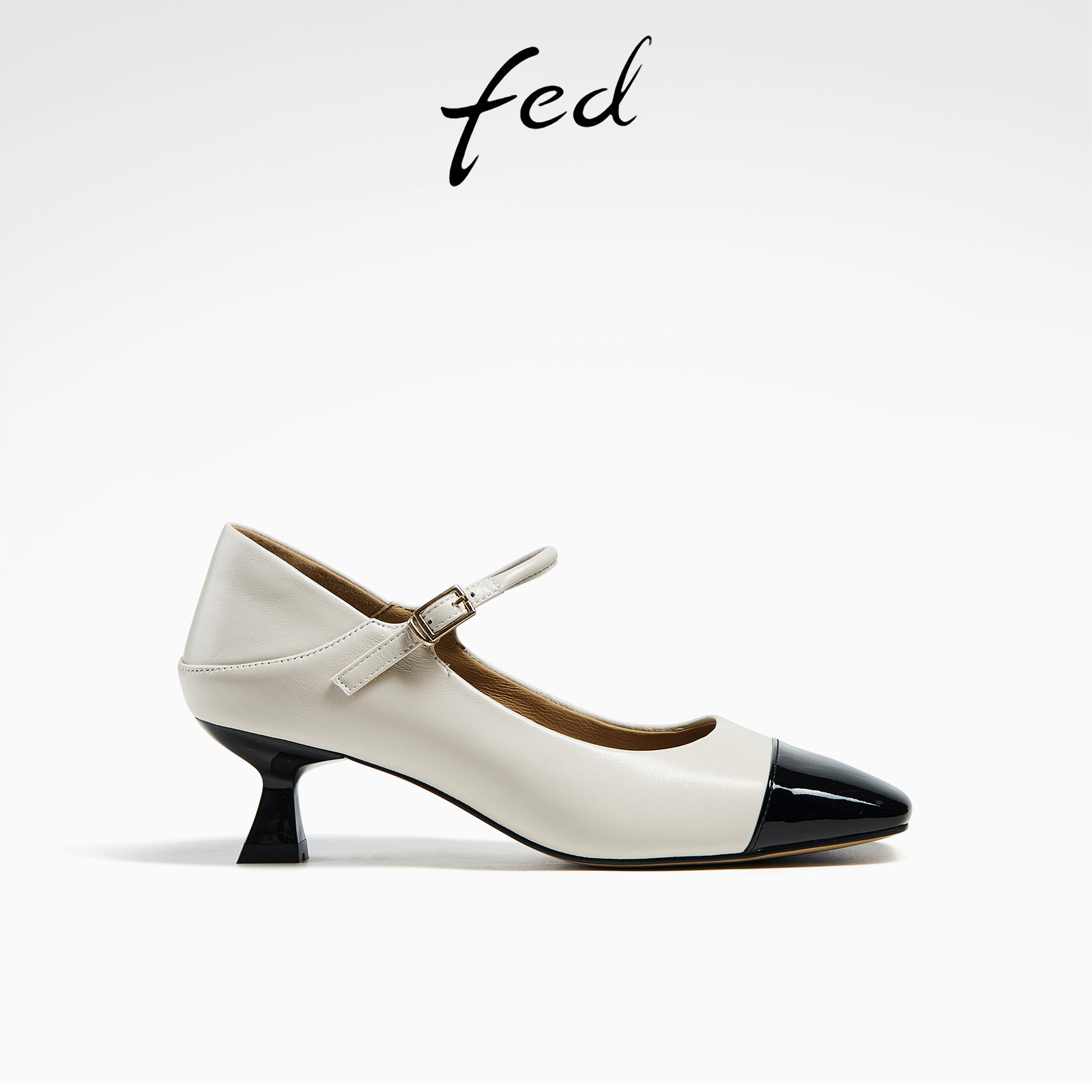 fed方头玛丽珍鞋春季新款女鞋法式单鞋拼色高跟鞋女D0106-ZCA188