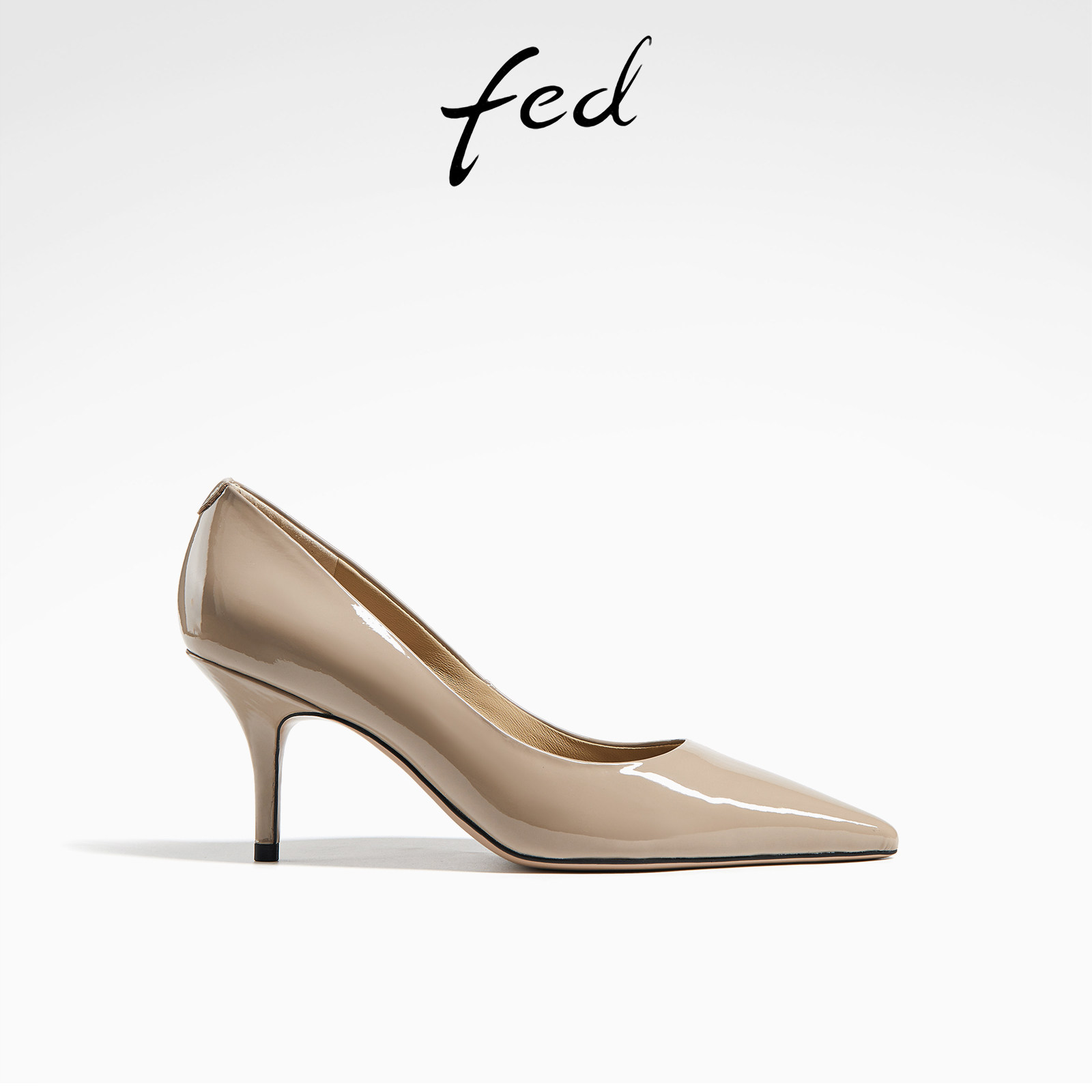 fed通勤单鞋女2023年春季新款方头细跟漆皮高跟鞋女R0204-ZFB020