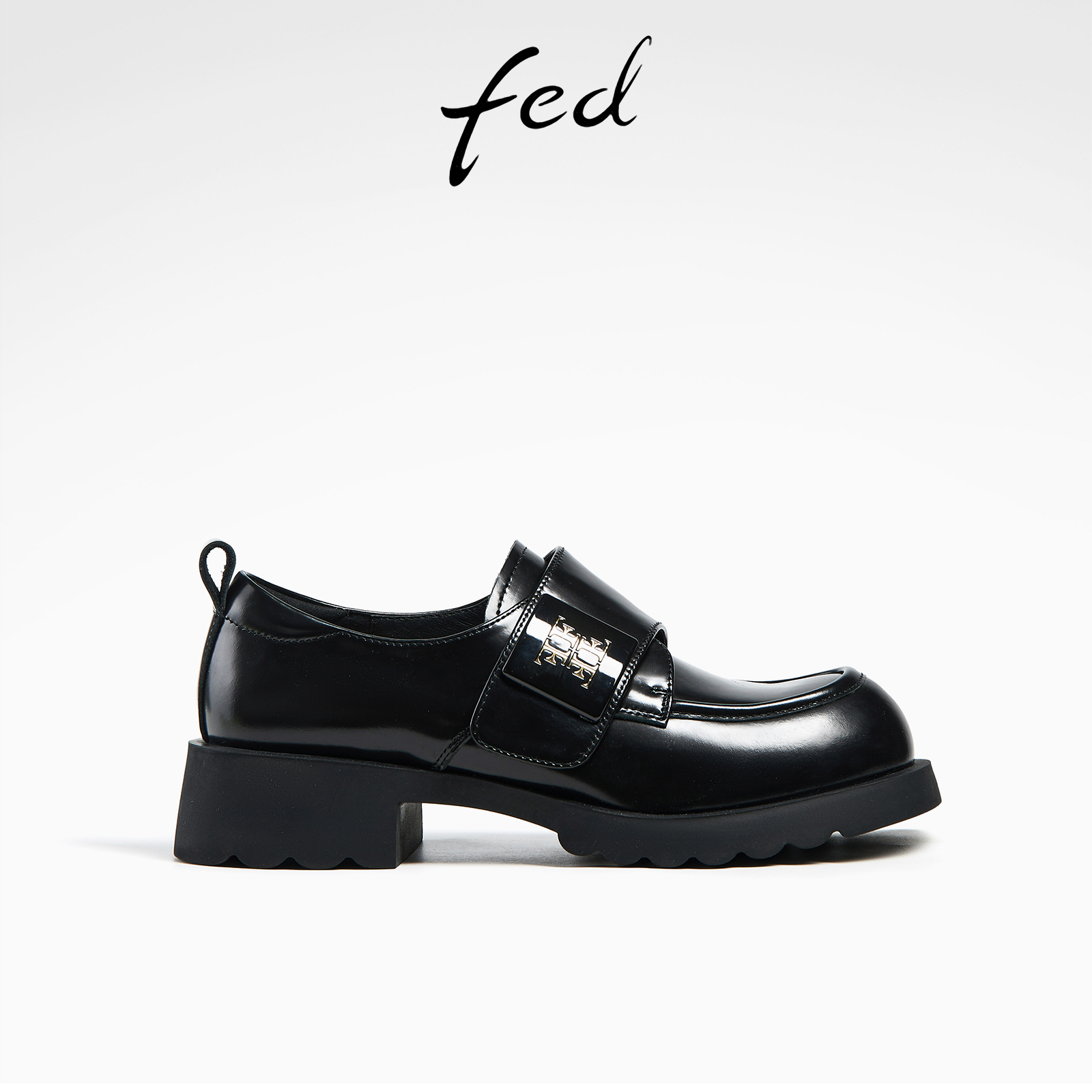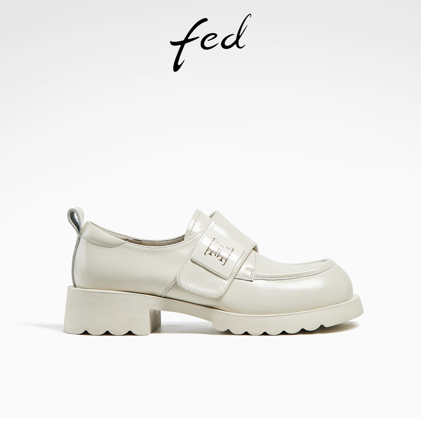 fed粗跟厚底乐福鞋春季新款女鞋魔术贴小皮鞋单鞋女D0103-ZCA173