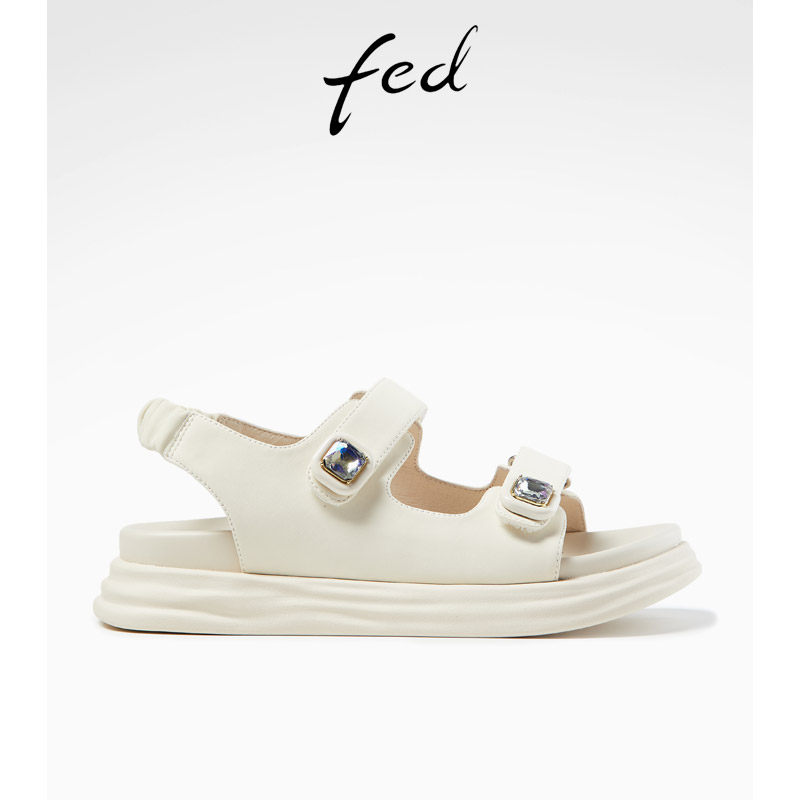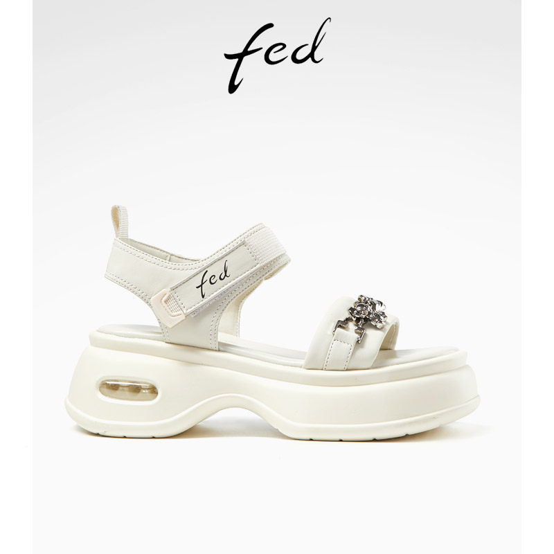 fed厚底休闲凉鞋女夏季新款女鞋真皮魔术贴沙滩凉鞋女R0422-YA581