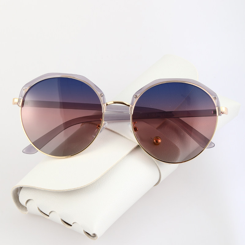 2024新款韩版眼镜潮女偏光太阳镜圆框时尚防紫外线渐变色墨镜茶色