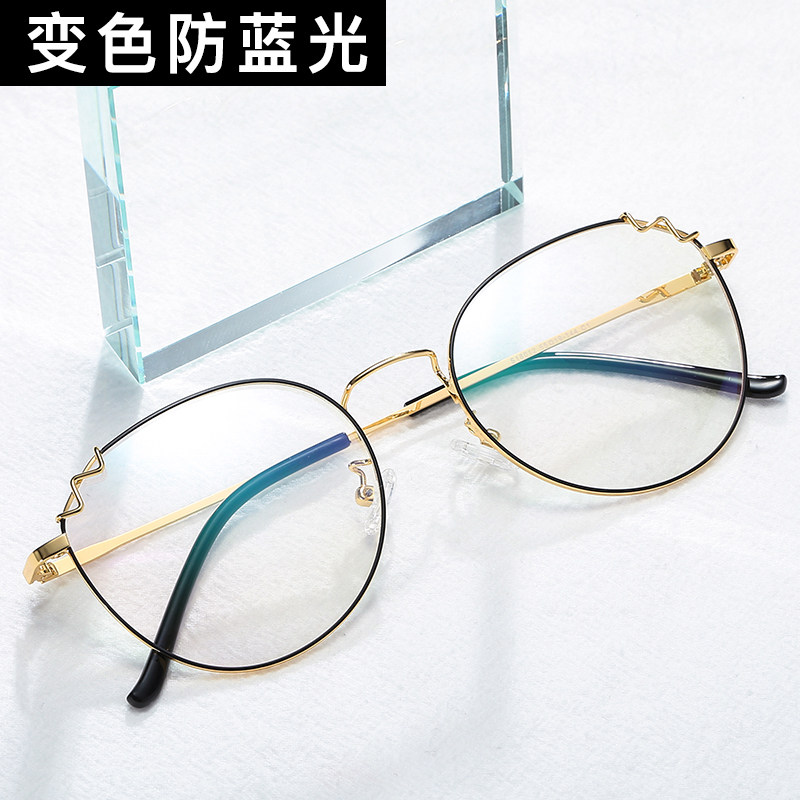 变色防蓝光眼镜女潮复古圆形黑框近视有度数墨镜男小脸防辐射韩版