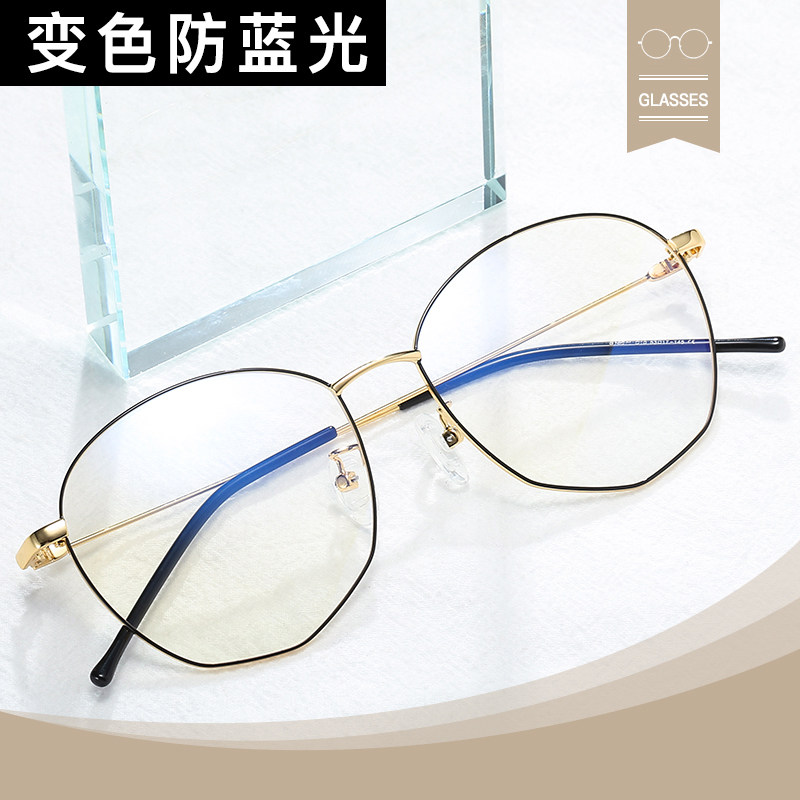 防辐射复古多边形变色防蓝光可配有度数近视眼镜女护目镜男显脸小