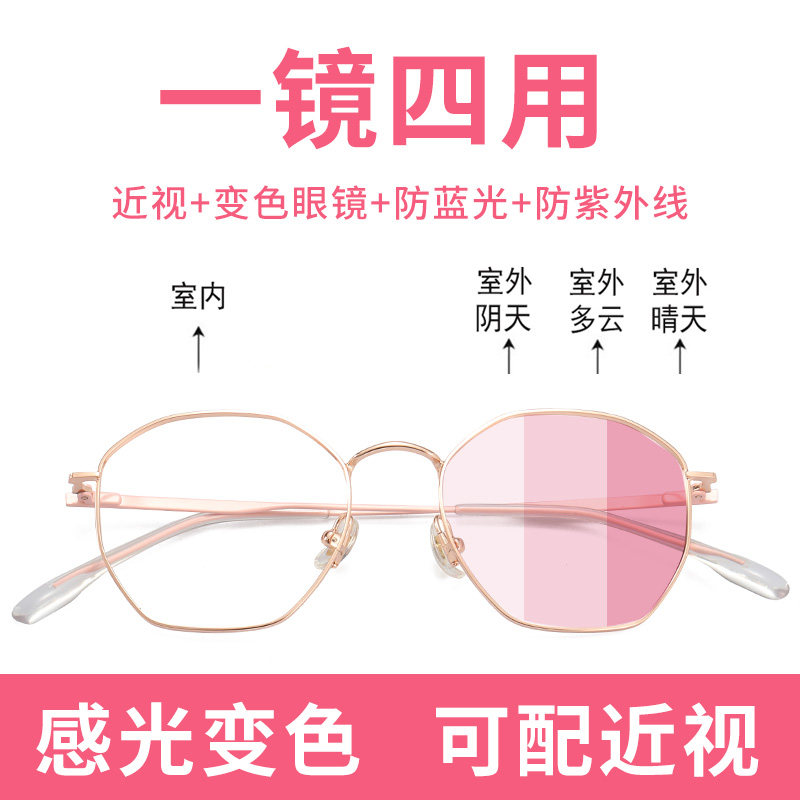 超轻纯钛近视变色眼镜女潮可配有无度数防蓝光护眼平光眼睛框架男