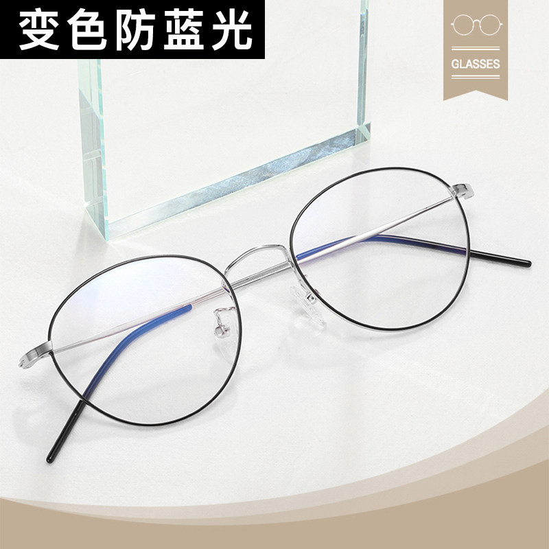 变色防辐射眼镜男防蓝光无度数平光镜女电脑圆框护目近视眼睛复古