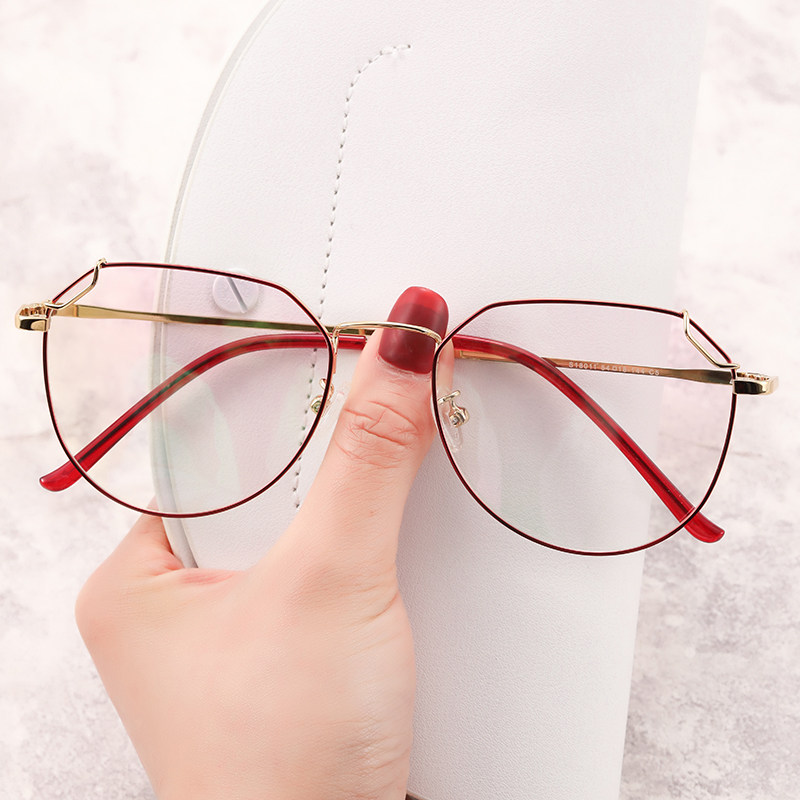 防蓝光眼镜女韩版复古个性猫耳朵圆形金属全框近视镜架变色防辐射