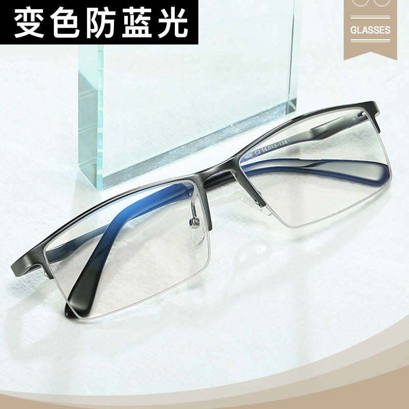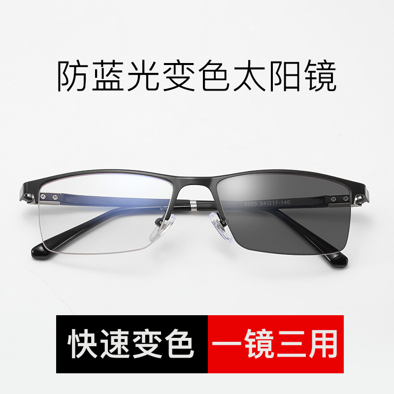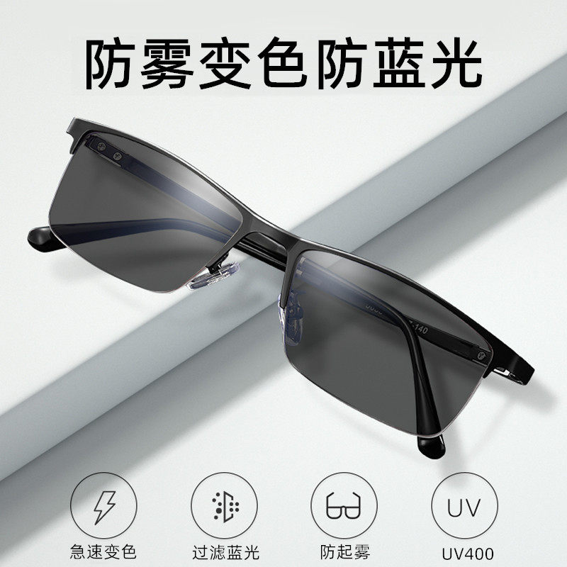 自动感光变色眼镜近视男潮可配度数眼睛架商务半框方形平光镜防雾