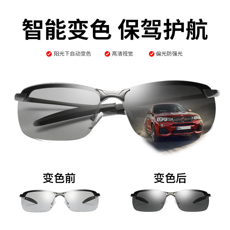 半框智能变色太阳镜男士偏光墨镜潮开车专用驾驶夜视日夜两用眼镜