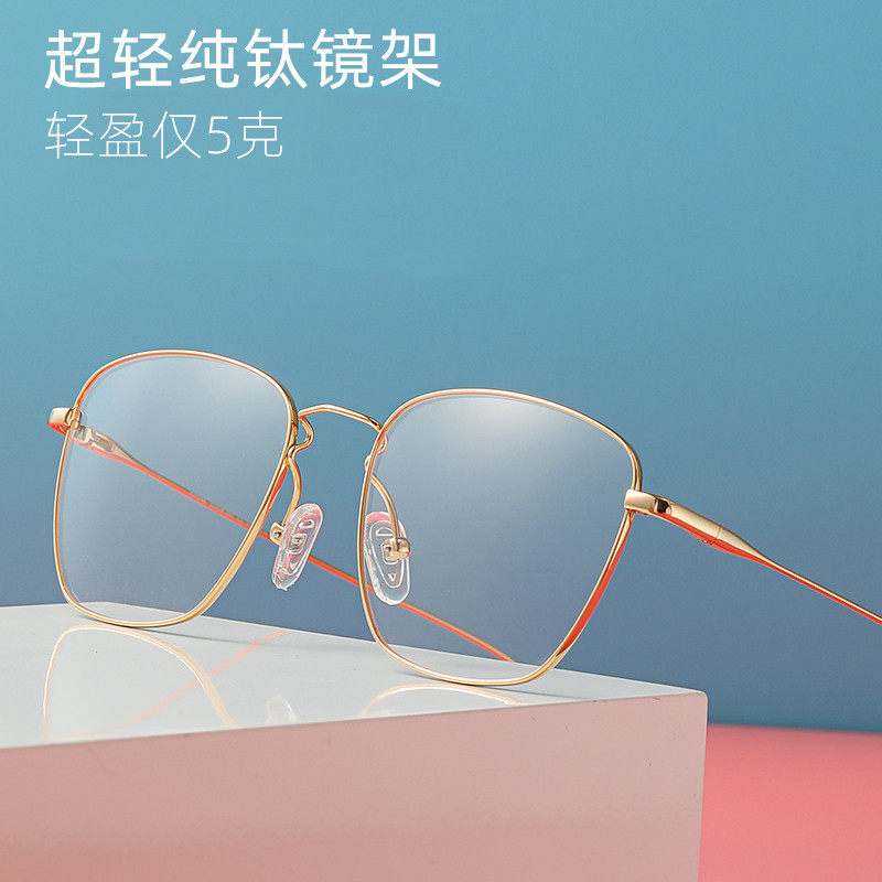 纯钛变色近视眼镜女防蓝光辐射电脑护眼睛超轻方形平光眼镜男韩版