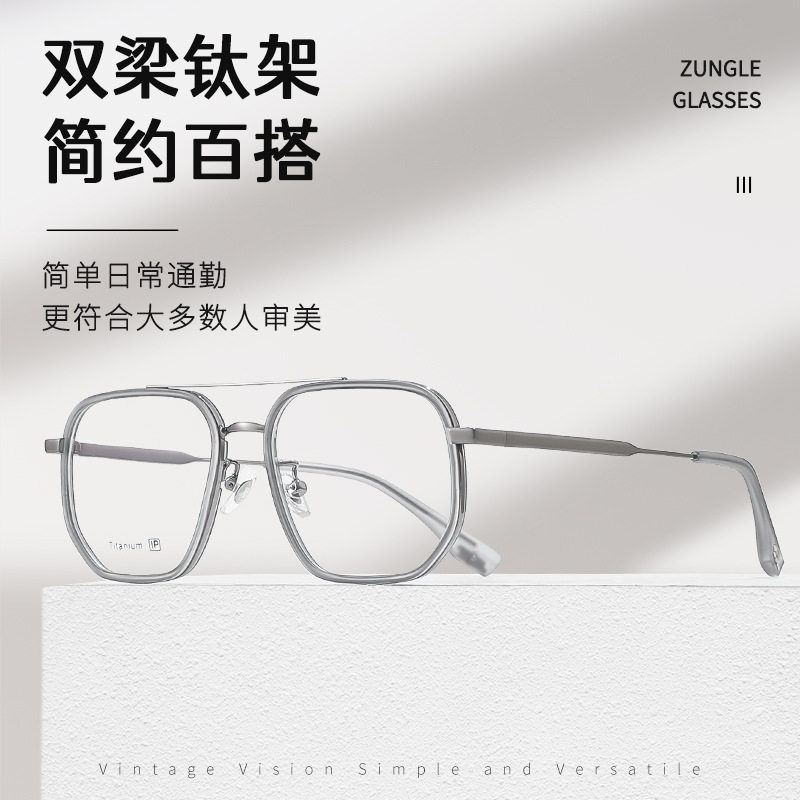 复古双梁近视眼镜变色网上可配有度数男潮大脸宽眼睛框架女显脸小