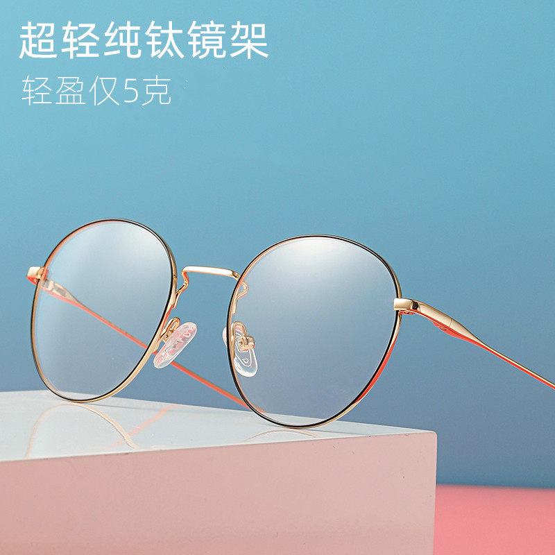 近视眼镜女超轻纯钛圆框架防蓝光辐射素颜可配度数眼睛男变色镜潮