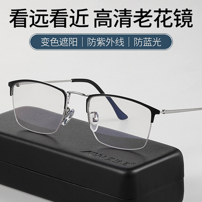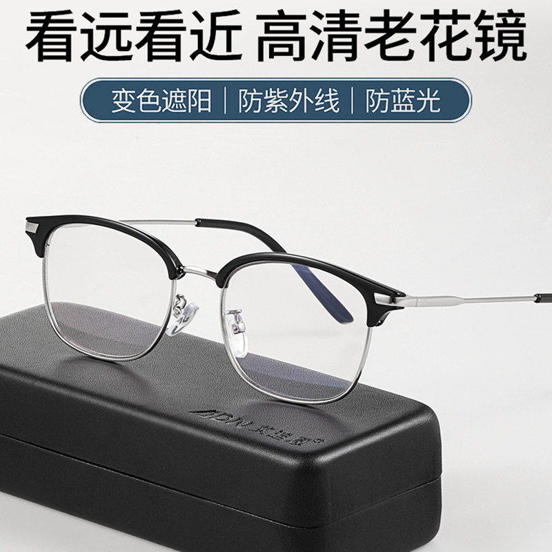 高清远近两用老花镜男防蓝光防辐射变色智能自动变焦老人老光眼镜