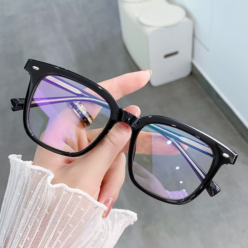 素颜神器腮红近视眼镜女潮防蓝光防辐射黑框GM变色大框护眼平光镜