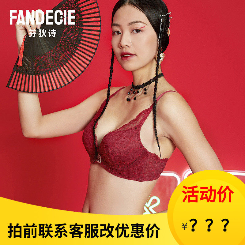 芬狄诗国风少女蕾丝无钢圈内衣厚小胸聚拢国潮发财红文胸FB00299