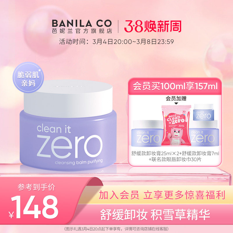 Banila CO/芭妮兰zero卸妆膏柔和脆弱肌紫色舒缓卸妆乳旗舰店正品