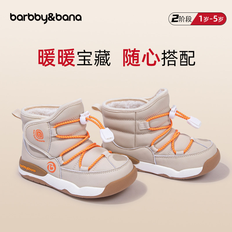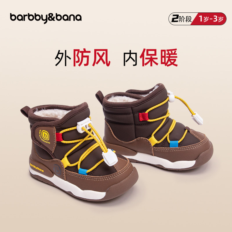芭比班纳宝宝冬季雪地靴儿童鞋子男童马丁靴女童短靴加绒中筒皮靴